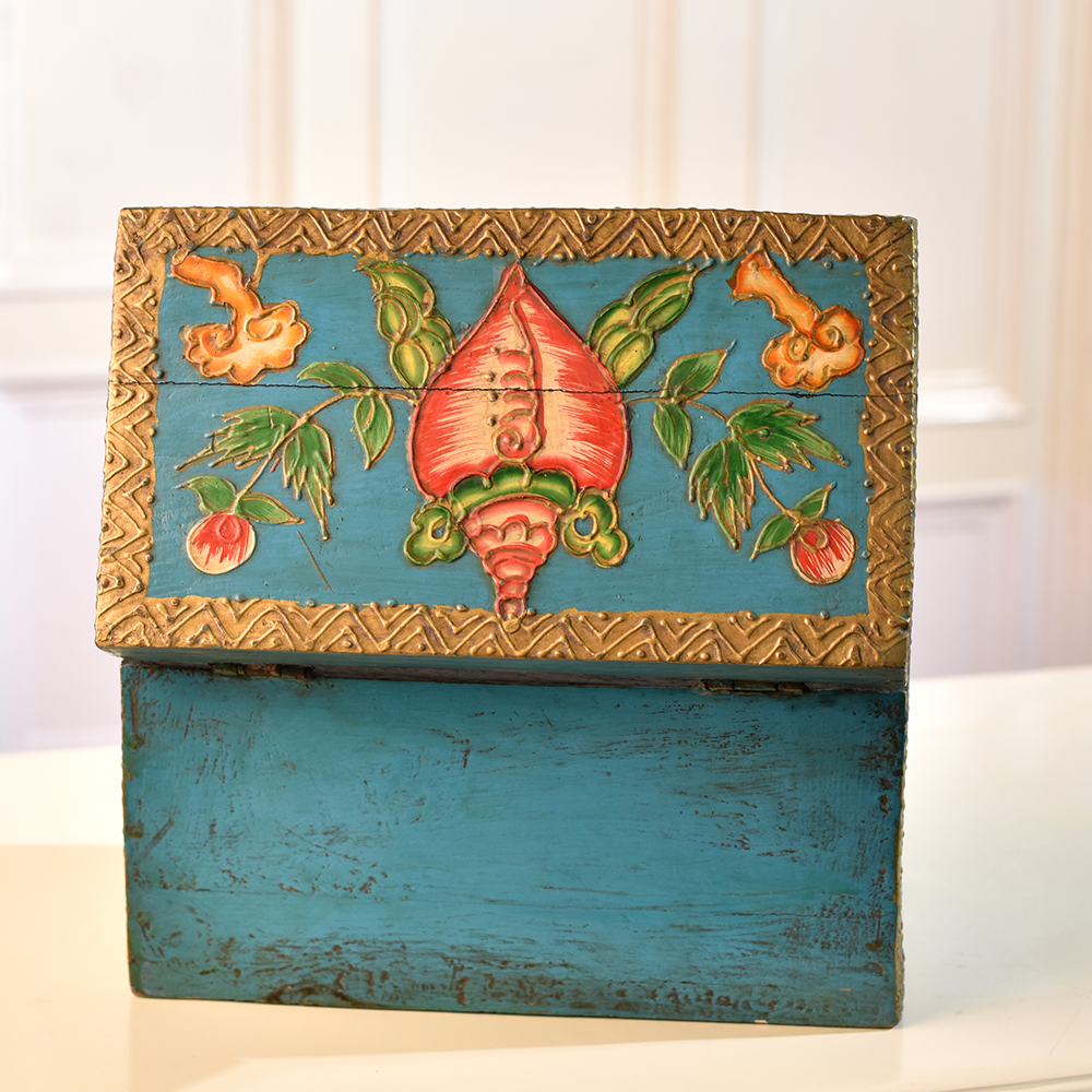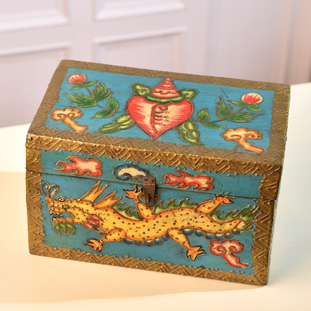 This Square Wooden Jewelry Box is a perfect blend of functionality and aesthetics. Handmade with care by skilled Indian artisans, this charming box is designed for those who appreciate both style and utility. The square shape provides ample space for storing your precious jewelry or small items securely, while the sturdy latch ensures they remain safe. The multi-colour finish adds a vibrant touch to any space, making it a versatile piece for home, office, cafe, restaurant, or hotel decor. The meticulously engraved floral patterns enhance its visual appeal, creating a captivating display for decoration. This box is not just a storage solution but also a statement piece that can be proudly showcased at exhibitions. Ideal for gifting on special, festive, or auspicious occasions, this jewelry box is a thoughtful and timeless present for your family, friends or relatives.