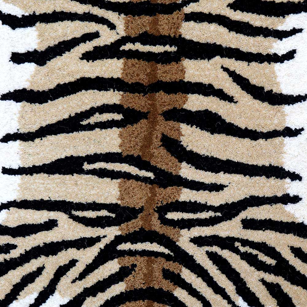 This exquisitely crafted Drowsy Tiger Rug Small will brighten up any space. Handmade in India, this 100% wool rug has a cotton backing. Place this elegant and sophisticated carpet in your living room and bedroom and prepare to receive numerous compliments from your guests. Not perfect, but definitely one-of-a-kind! This handcrafted rug depicts a tiger lying flat on its back, with its spine traceable from beneath its head to the tail. This one is one-of-a-kind and distinctly Indian, and it would make a quirky addition to your space.