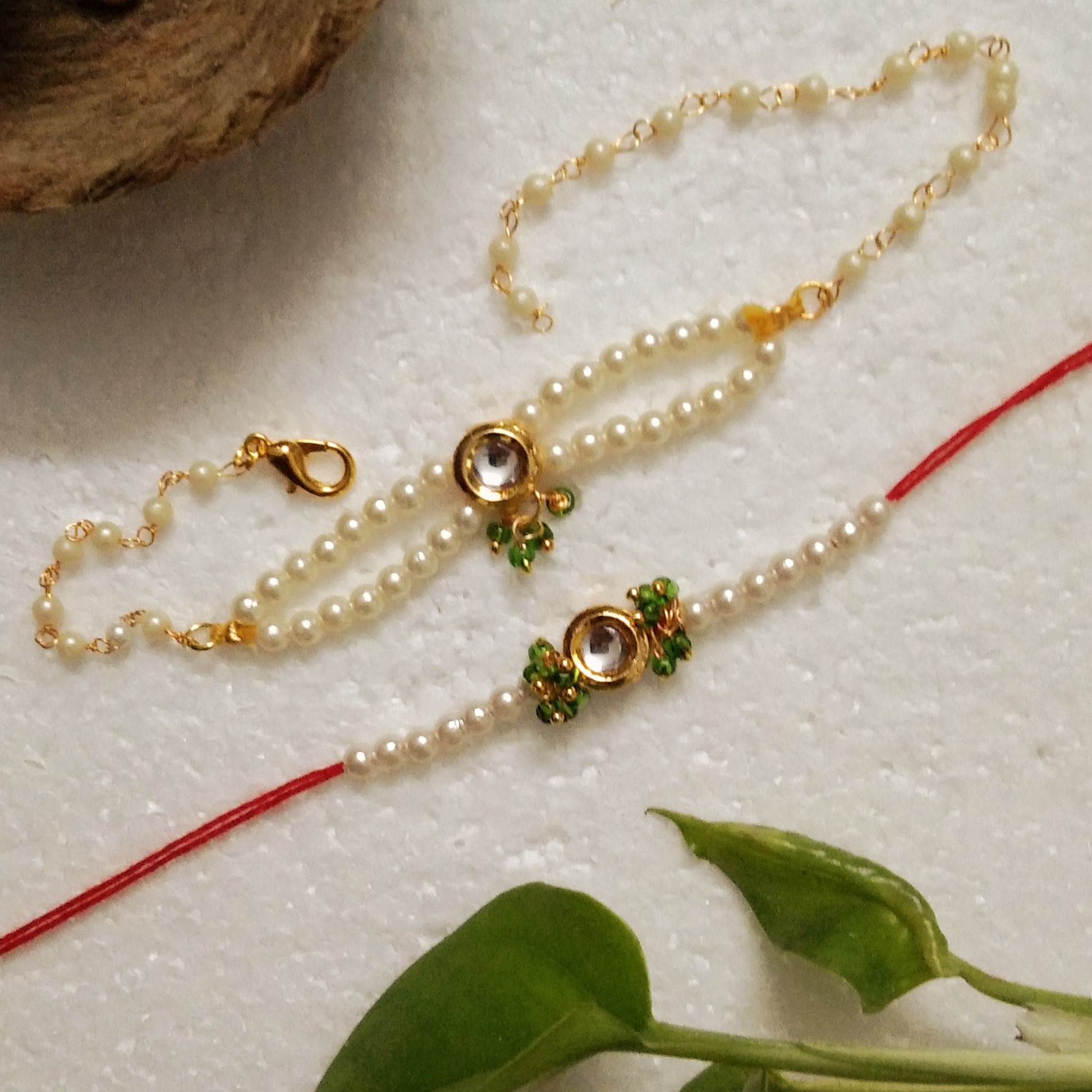 This designer rakhi uses kundan/acrylic beads to create a festive accessory that's as unique as your bond, perfect for honoring traditions in style.