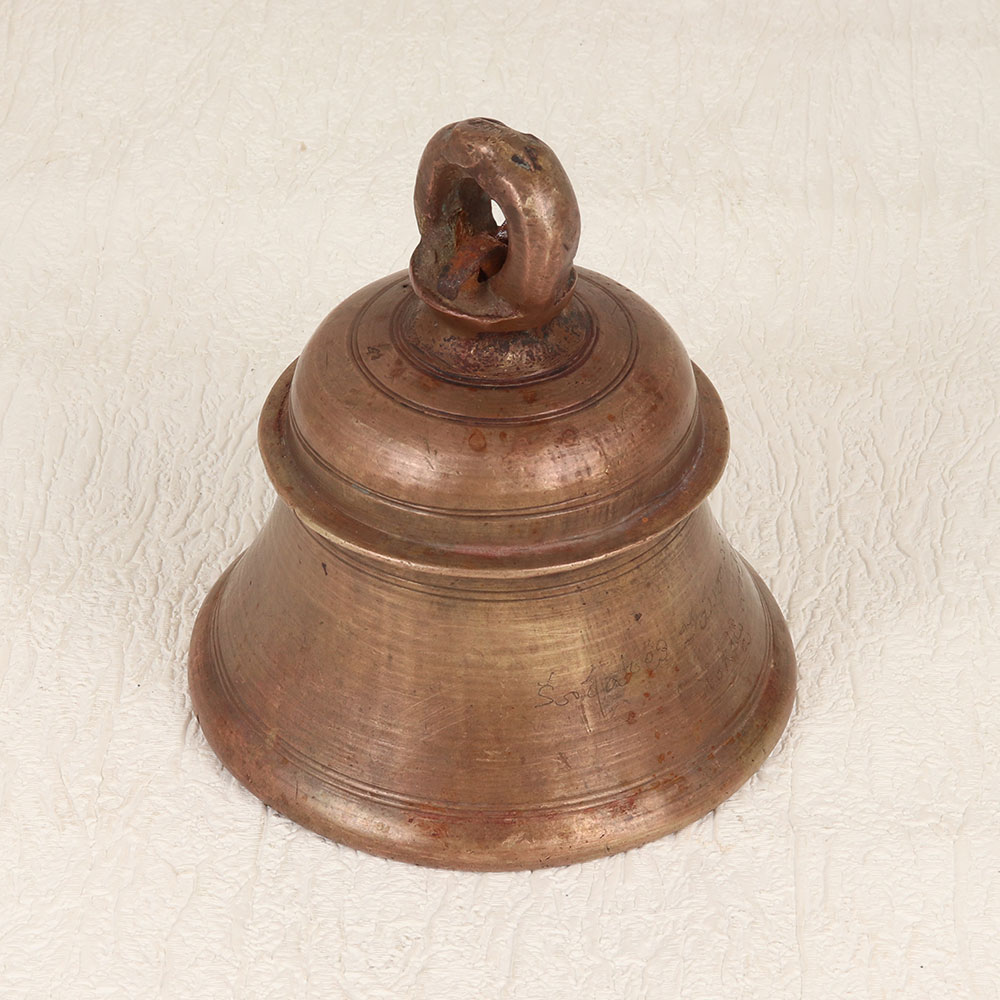 Buy a Vintage Bell Metal Temple Bell online and get a hassle free delivery right at your doorstep. Handmade by skilled artisans from Central India, this exquisite piece embodies centuries of tradition and craftsmanship. The bell is meticulously fashioned from high-quality bell metal, ensuring durability and a resonant, melodic chime that echoes through sacred spaces. Its antique brown finish adds a touch of nostalgia and authenticity, giving it a rustic allure that complements any traditional or vintage decor. The temple bell features a convenient loop for easy hanging, making it a versatile addition to your home, office, restaurant, hotel, or cafe prayer room. Imbued with cultural significance, it serves not only as a religious artefact but also as a stunning decorative element, seamlessly blending spirituality with aesthetic appeal. This handmade masterpiece transcends its utilitarian purpose, making it a cherished addition to any vintage collection. Share the gift of divine resonance and cultural heritage by presenting this bell to your family, friends or relatives on special, festive, or auspicious occasions.