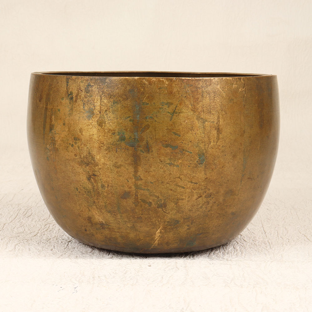 Escape the stress of daily life with the mesmerizing tones of this vintage Tibetan singing bowl. Meticulously handcrafted by skilled artisans, this bell metal bowl resonates with tranquil vibrations designed to calm the mind and body. The pleasant chimes of this singing bowl quiet racing thoughts and help achieve mindfulness. Designed for meditation practices, the immersive sound experience promotes inner stillness. Simply run the mallet around the rim in a circular motion to be transported to a state of tranquility. Bring the gift of serenity into your life or a loved one's with this beautifully crafted Tibetan singing bowl. The soothing vibrations whisk you away to a peaceful state of relaxation and harmony. Let the calming tones resonate within and find your zen.
