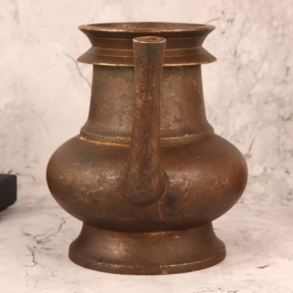 This Brass Water Pot with Spout is a true testament to the craftsmanship of skilled Indian craftsmen. Its antique brown finish that not only adds a touch of timeless elegance but also evokes a sense of nostalgia. Crafted from high-quality brass, this water pot is not just a piece of decor but a symbol of artistry and tradition. Its versatile design makes it suitable for a range of settings, from the home to the office, restaurant, hotel, cafe, or shop. This pot holds a special place in religious ceremonies, as it can be used as a holy water vessel in temples and during rituals, Hindu ceremonies, and havans. Its sacred significance adds a spiritual aura to any space. Beyond its spiritual use, this water pot can double as a charming flower vase, bringing life and vibrancy to your surroundings. Collectors will appreciate its antique allure as it seamlessly fits into vintage collections. With its rich cultural heritage, this Brass Water Pot makes for a meaningful gift, perfect for presenting to family, friends or relatives on special, festive, or auspicious occasions.
