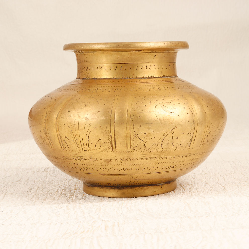 With its antiqued brass finish, this vintage holy water pot radiates old-world spiritual charm. Display this brass holy water pot prominently in your home to uphold meaningful rituals and traditions. Use it to keep a supply of holy water on hand for prayer, blessings, baptisms, and more. The vintage styling gives this pot an heirloom look that feels plucked from the past. Bring an authentic, sacred presence into your home with this brass vintage holy water pot. The striking antique patina and engraved details give it a one-of-a-kind character that devotees will treasure for years. Keep your faith close by with this beautiful vessel designed to hold holy water and enable cherished rituals.