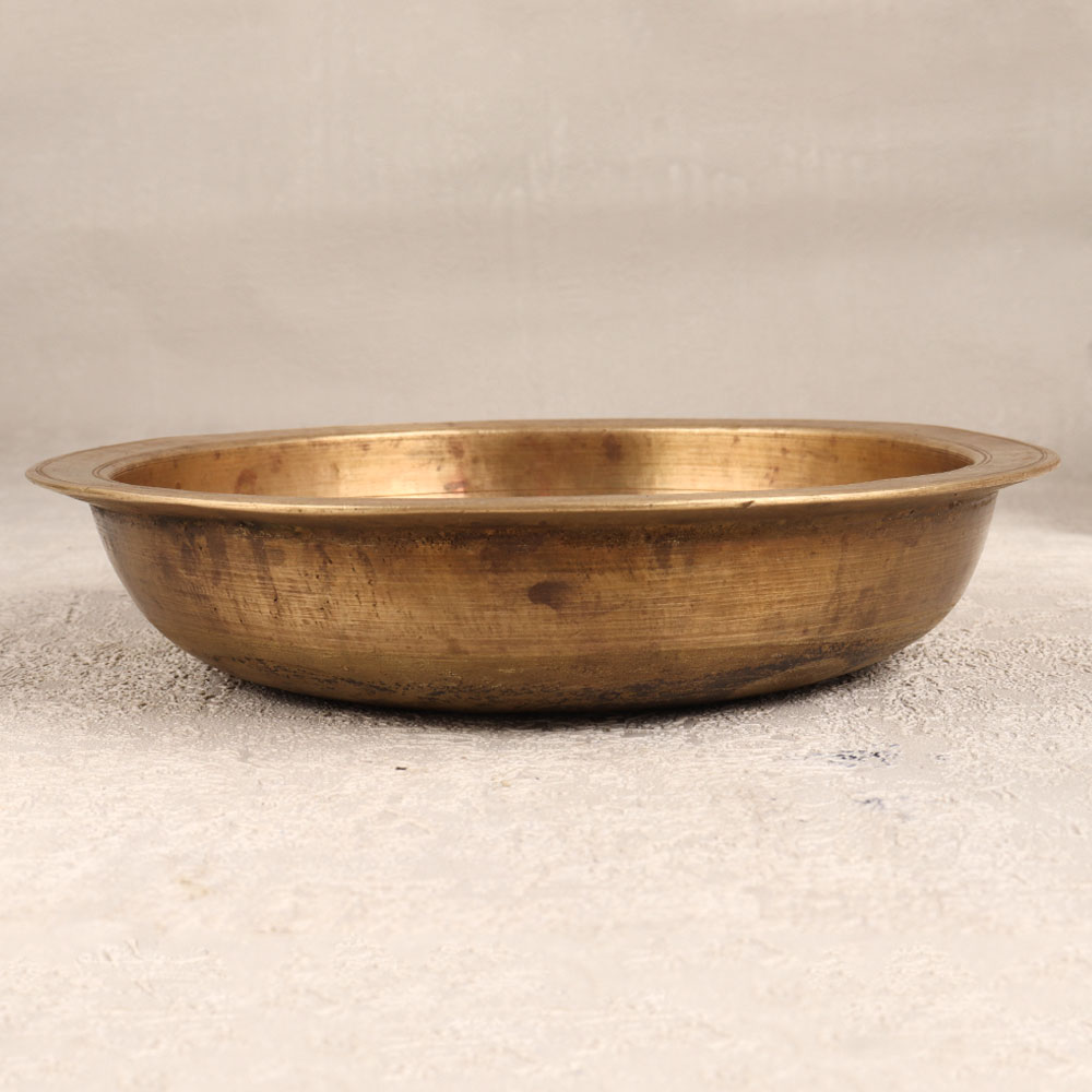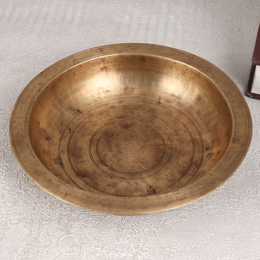 An Antique Brown Brass Bowl that is a masterpiece crafted by highly skilled Indian artisans. This versatile piece serves as a unique flower pot or a divine bathtub for gods in temples, adding a touch of elegance and spirituality to any space. Handmade with precision from high-quality brass, the bowl boasts a radiant antique brown finish, highlighting the artistry and tradition embedded in every detail. Perfect for adorning homes, offices, restaurants, hotels, or cafes, this brass bowl transcends mere decoration, becoming a timeless addition to any environment. Its versatile design seamlessly blends with various decor styles, making it a cherished item for vintage collectors. The bowl's cultural significance and exceptional craftsmanship make it an ideal gift for your family, friends or relatives during special, festive, or auspicious occasions. Embrace the rich heritage of Indian artistry and bring a sense of divine charm to your surroundings with this Antique Brown Brass Bowl.