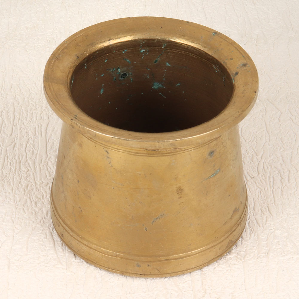 Enhance your spiritual space with the Vintage Brass Panchpatra Holy Pot that is a testament to the rich traditions of South Indian Art. Meticulously handcrafted by talented Indian artisans, this sacred pot is made from high-quality brass, boasting an antique brown finish that adds a touch of timeless elegance. Versatile in its purpose, the Panchpatra is an essential element for prayer, rituals, and havans, enhancing the sacred ambiance of your home, office, restaurant, hotel, or cafe. Beyond its spiritual significance, this holy pot doubles as a charming decorative piece, seamlessly blending antiquity with contemporary aesthetics. Its multifunctional design allows it to serve as a unique flower pot, further contributing to its appeal. Ideal for collectors of vintage treasures, this Panchpatra becomes a distinguished addition to your curated ensemble. Additionally, it makes for a thoughtful and meaningful gift for your family, friends or relatives on special, festive, or auspicious occasions, symbolizing the enduring beauty of tradition and spirituality.