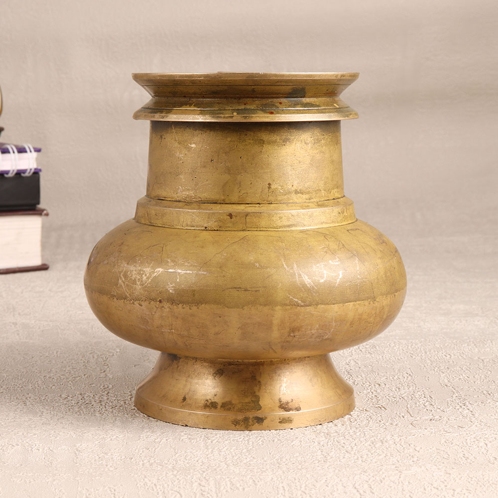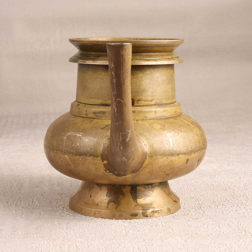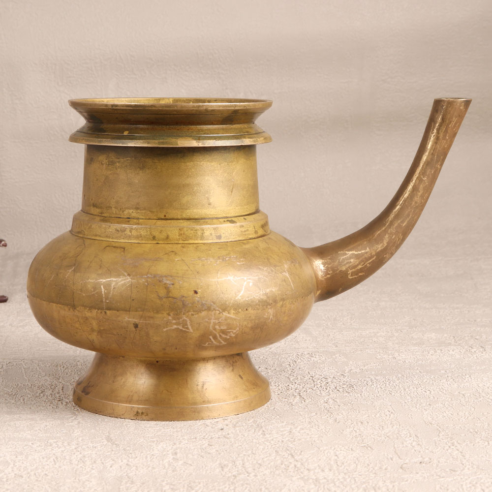 Immerse your sacred moments in the divine elegance of our Brass Sagar Pot with Spout which is a vessel steeped in tradition and crafted with meticulous artistry by highly talented Indian craftsmen. Inspired by the rich heritage of South Indian Art, this holy water pot seamlessly blends functionality with aesthetic allure. Fashioned from high-quality brass, the antique brown finish exudes a timeless charm that resonates with spirituality. This versatile pot serves a dual purpose, whether cradling holy water during prayers or adorned with vibrant flowers, adding a touch of sanctity and beauty to any space. The intricate design reflects the cultural finesse of South India, making it an ideal addition to your home, office, restaurant, hotel, or cafe. An impeccable gift for your family, friends or relatives on special, festive, or auspicious occasions, the Brass Sagar Pot with Spout is a tangible embodiment of sacred aesthetics and cultural reverence.