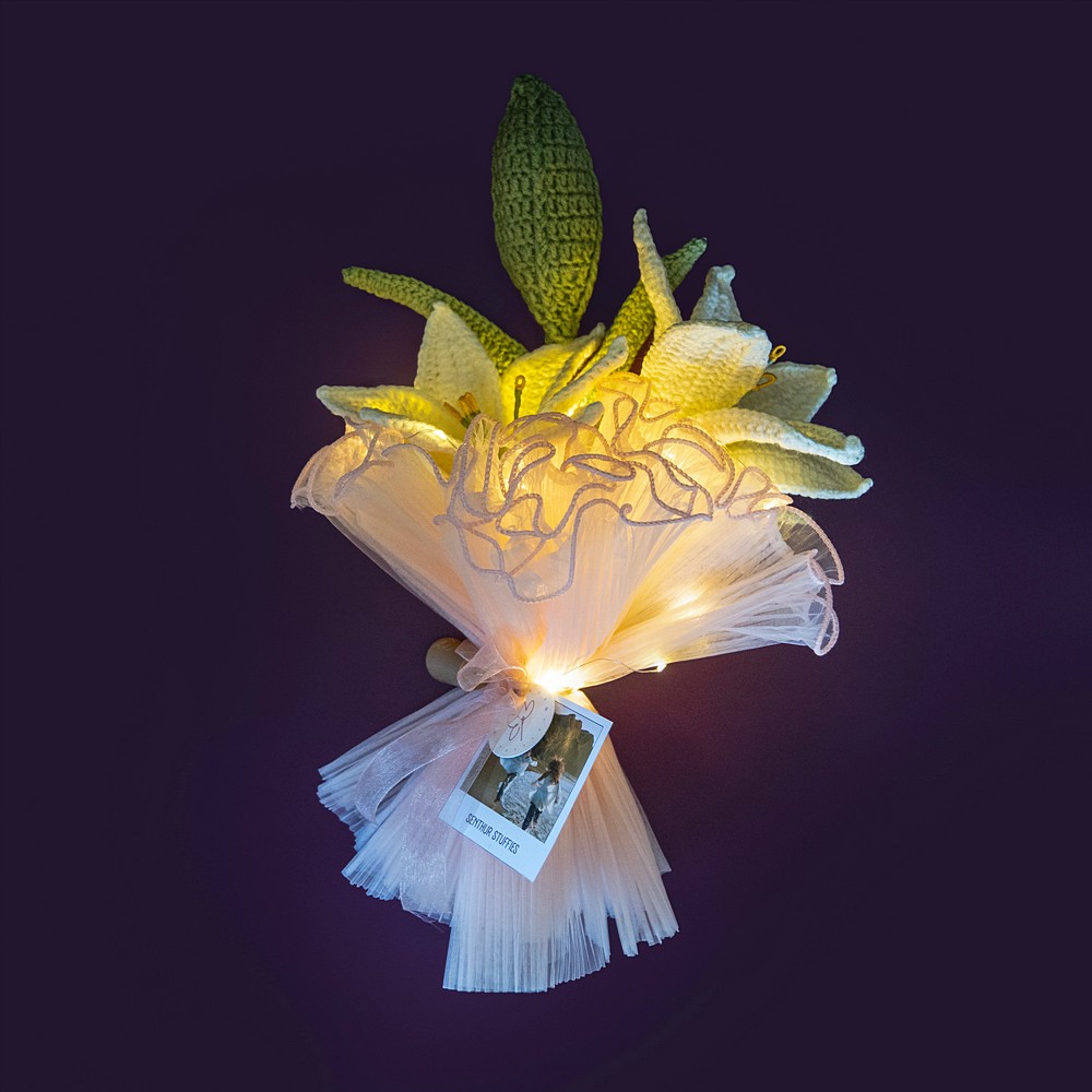 - Expertly crocheted petals and leaves are shaped by hand using premium acrylic yarn and fibre filling, with craft wire giving each yarn bouquet a realistic posture