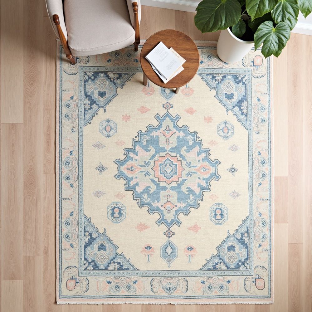 Traditional Hand-Knotted Wool Rug Persian Medallion Design in Navy, Coral & Maroon Introduce elegance and heritage into your space with this Traditional Hand-Knotted Wool Rug, featuring a striking Persian-style medallion design in rich tones of navy blue, coral, and maroon. Painstakingly handcrafted in Bhadohi, Indiathe global hub of artisanal rugsthis masterpiece blends timeless artistry with rugged durability. Product Specifications Available Sizes: 4x6 feet 5x7 feet 6x9 feet 8x10 feet 9x12 feet Custom sizes available on request Design: Traditional Persian/Oriental medallion with floral and vine motifs Color Palette: Base: Deep Navy Blue Accents: Coral, Ivory, Maroon, Golden Yellow & Sky Blue Material: 100% Premium Hand-Spun Wool Technique: Fully hand-knotted using traditional Persian knots Pile: Medium-Low soft underfoot, yet durable Origin: Handmade in Bhadohi, India Processing Time: 45 weeks (made to order with attention to detail) Custom Designs Available Looking for something unique? Whether its a specific color palette, inspiration image, or a personalized design, our artisans will bring your vision to life. Get in touch to create your one-of-a-kind masterpiece. Handmade Heritage from Bhadohi Crafted by skilled artisans in the Carpet.