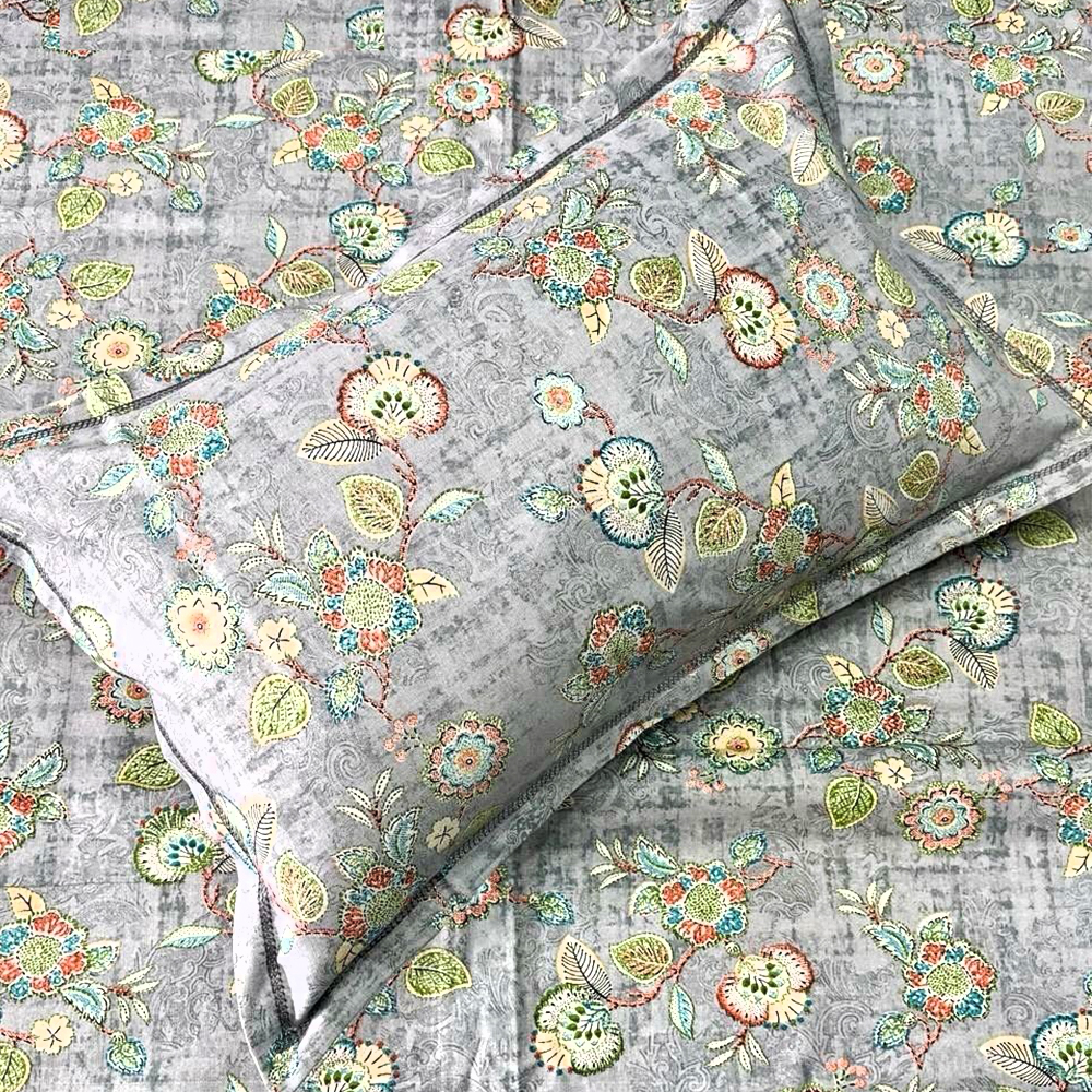 Upgrade your bedroom with this Elegant Multicolor King Size Bedsheet Set, crafted from 100% pure cotton casement fabric. The standout feature of this set is its intricate and unique pattern — a blend of blooming floral motifs and fine detailing on a soft, textured grey background that exudes luxury and warmth.This 3-piece set includes one flat (non-fitted) bedsheet and two matching pillow covers, designed to offer a snug, wrinkle-free look while ensuring breathable comfort throughout the night. Whether for personal use or as a thoughtful gift, this versatile bedding set adds a stylish and premium touch to any home.
