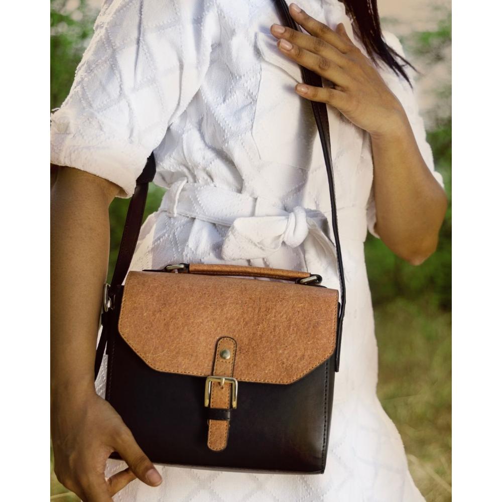 This elegant vegan leather sling bag embodies elegant and vegan leather craftsmanship. Ideal for those who cherish handcrafted elegance, it offers a statement of style and function. Packed & quality-checked by Indianshelf.