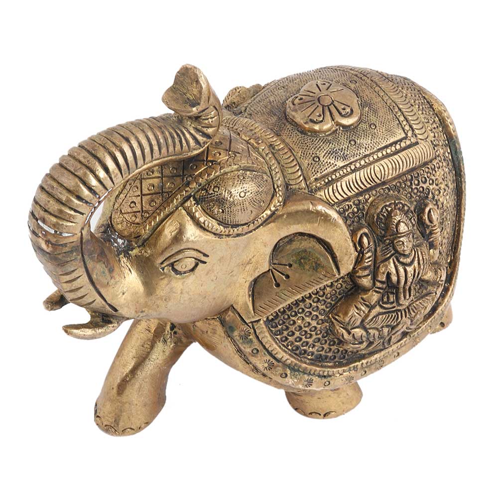This Elephant with figures Laxmi & Ganesha big showcases an elephant with a trunk raised. It is a symbol of prosperity and wealth. It would help if you placed these on your front door. It reinforces their role as protectors and saviours. Use a pair of these elephants on your main doors if you wish to multiply your success. These elephants bring protection, fame, and fortune. These make for great gifts for offices and housewarming parties.