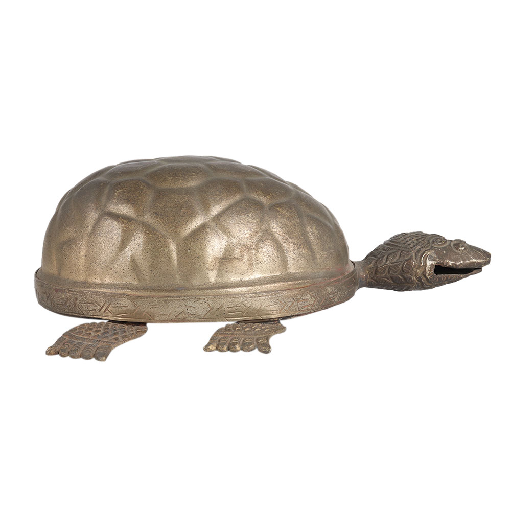 An embellished piece of art made from high quality brass using ancient techniques. This brass turtle has an antique finish with beautiful patterns. As per vastu, placing a turtle in the home or office brings prosperity, luck and wealth. It spreads positivity in the environment if it is placed in the north or northwest of the house. Some people believe that the turtle near the bed dispels anxiety and helps against insomnia. It is a gift of happiness for festive and special occasions for your loved ones.