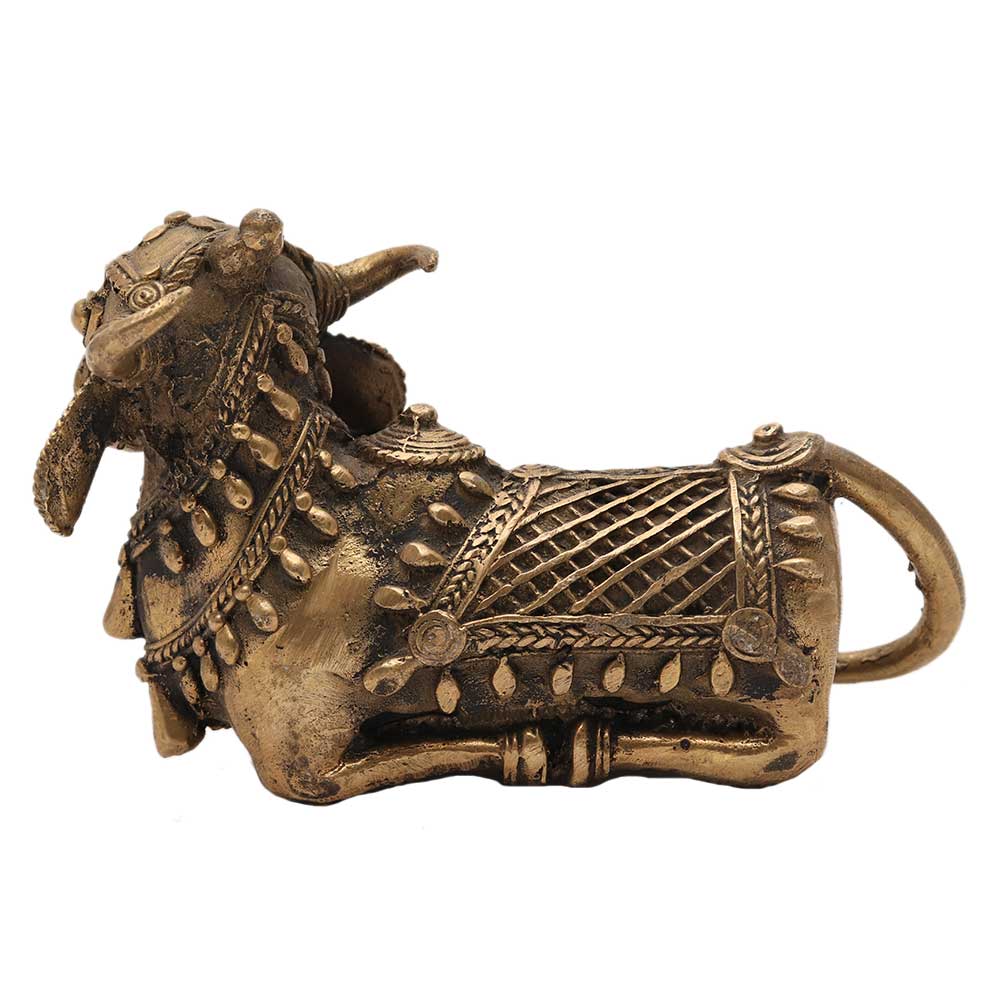 This holy Embellished decorative Nandi bull statue is a great idea for your home when you are recovering from frequent problems or losses. It also helps boost the business, reduce all your fears and thus ring in prosperity and wealth. The Embellished decorative Nandi bull is designed using bronze, a superb resilient metal. It makes for a perfect Pooja room addition or gifting. Bring in this holy statue along with Lord Shiva's to usher in peace and prosperity.
