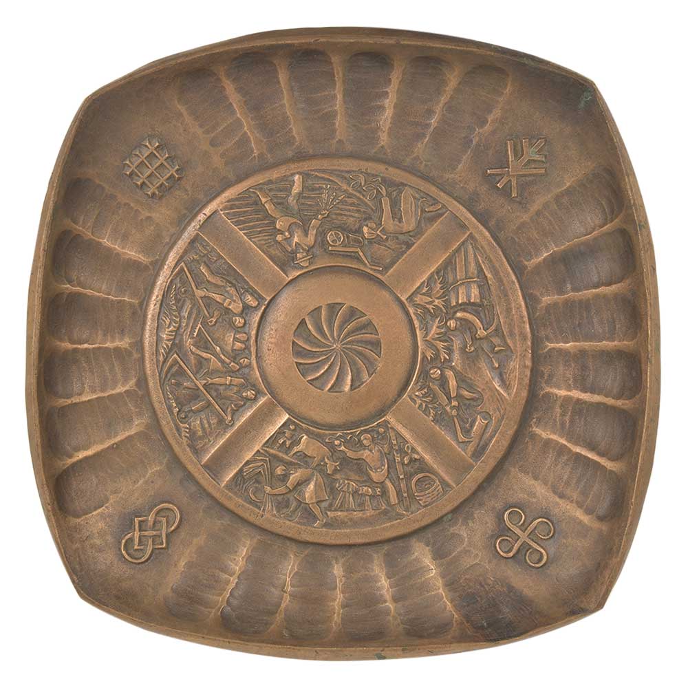 English Wrought and Hammered Brassware Square Shaped Trays. These Have Old English Scenes, and Scenes of Wales or Countryside Village Scenes of Daily Life of People Living in Far Remote Areas Away From the City. Use as a Wall Hanging in the Dining Room or Gallery.