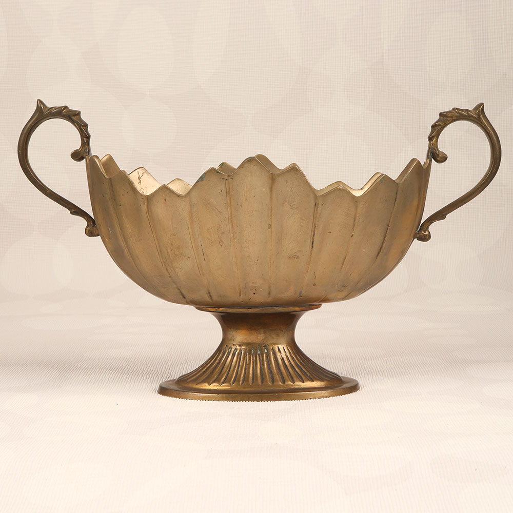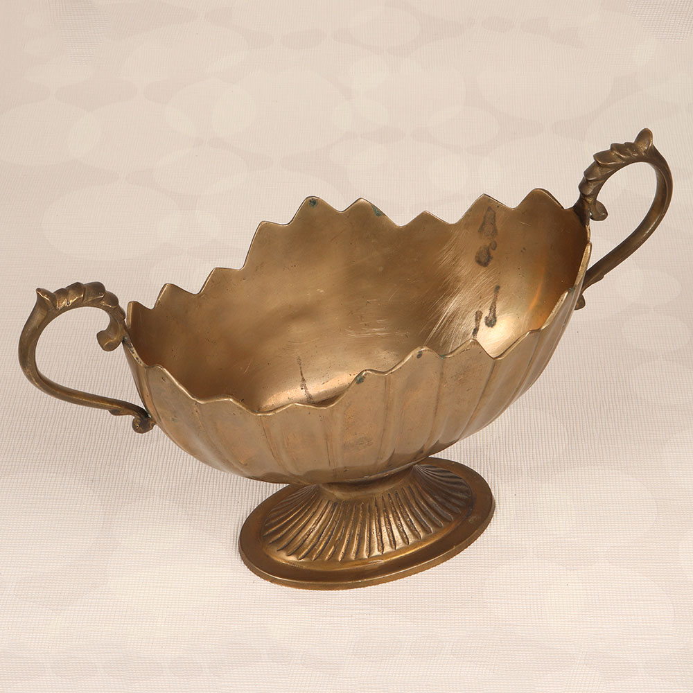 This Brass Fruit Basket is a timeless piece of functional art that seamlessly blends utility with elegance. Handmade with precision and passion by highly talented Indian artisans, this stunning fruit basket embodies the rich heritage of English Art, showcasing meticulous detailing and a lustrous antique brown finish. Crafted from high-quality brass, this basket features two delicately designed handles, adding a touch of sophistication to its overall charm. Its versatile design makes it a perfect addition to any setting, be it at home, office, restaurant, hotel, or cafe, where it effortlessly enhances the aesthetic appeal of any space. Not just a utilitarian item, this brass fruit basket is a visual delight, creating a sense of opulence and refinement. The warmth of its antique brown finish imparts a classic feel, making it an ideal decor piece for both traditional and contemporary interiors. This handmade masterpiece isn't just an accessory; it's an expression of craftsmanship and artistry. Moreover, it serves as a thoughtful and meaningful gift for your family, friends or relatives on special, festive, or auspicious occasions.