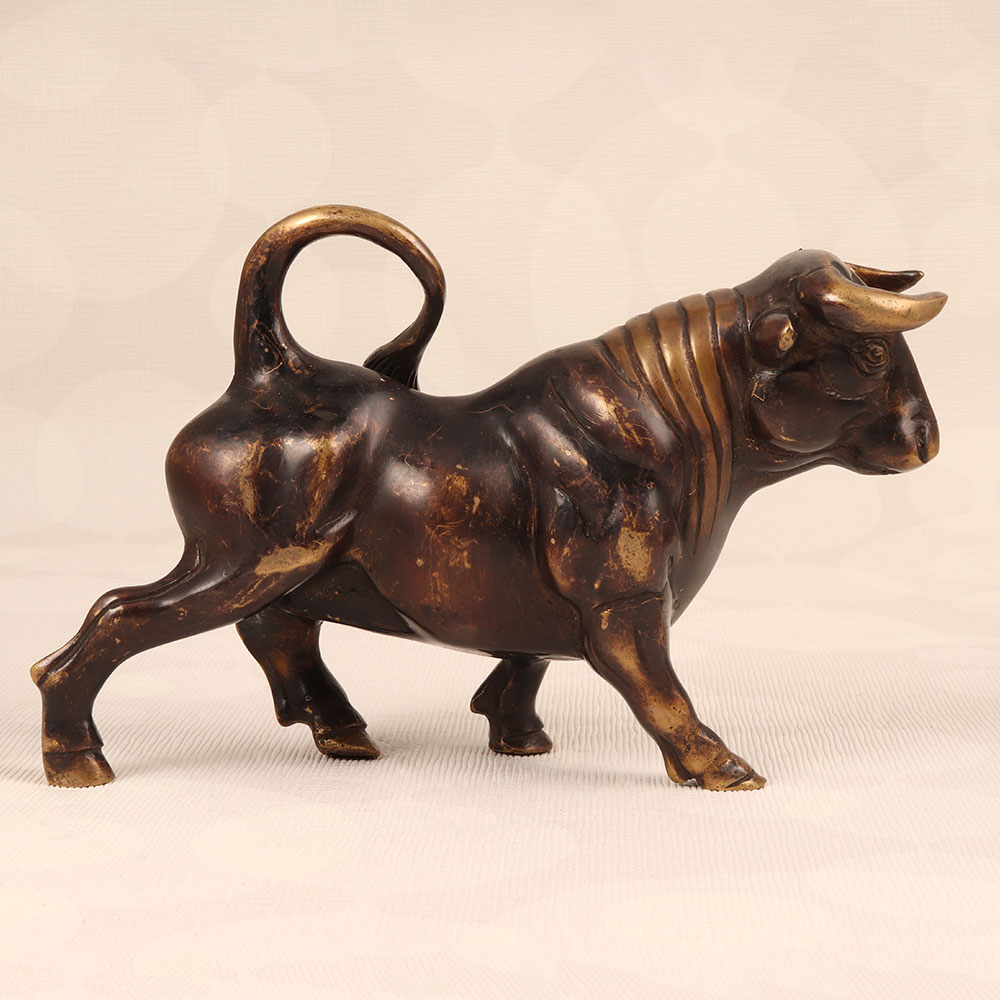 Behold the majestic embodiment of strength and resilience – the Brass Fighting Bull Statue. Handcrafted by highly skilled artisans in the timeless tradition of English Art, this masterpiece exudes both elegance and power. Cast from high-quality brass, its formidable presence is enhanced by a sophisticated dark finish, adding an air of sophistication to any space. The intricately detailed statue captures the dynamic essence of a charging bull, frozen in a moment of spirited confrontation. Its robust form serves as a symbol of tenacity and determination, making it an ideal adornment for diverse settings. Whether gracing the ambiance of your home, office, restaurant, hotel, or cafe, this exquisite piece is sure to command attention and inspire awe. Not just a captivating decor item, the Brass Fighting Bull Statue also makes for a thoughtful and enduring gift. Perfect for special, festive, or auspicious occasions, it carries the weight of artistic craftsmanship and symbolism. Give the gift of strength, resilience, and artistry to your family, friends or relatives with this extraordinary brass masterpiece.