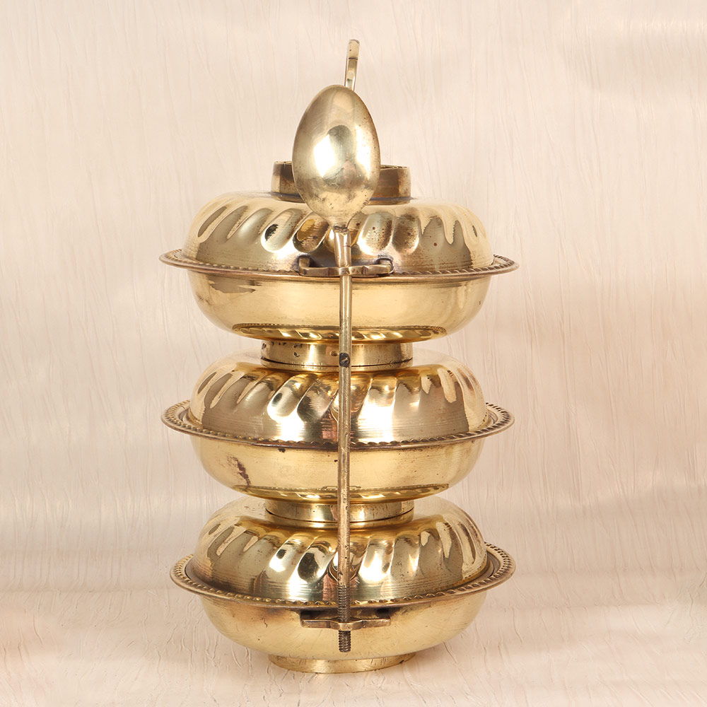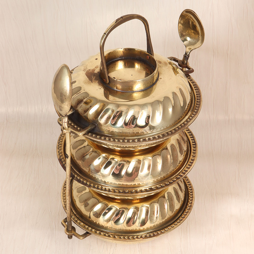 - Crafted from high-quality brass, this tiffin box exudes a warm, golden glow that will instantly add a touch of vintage elegance to your décor.