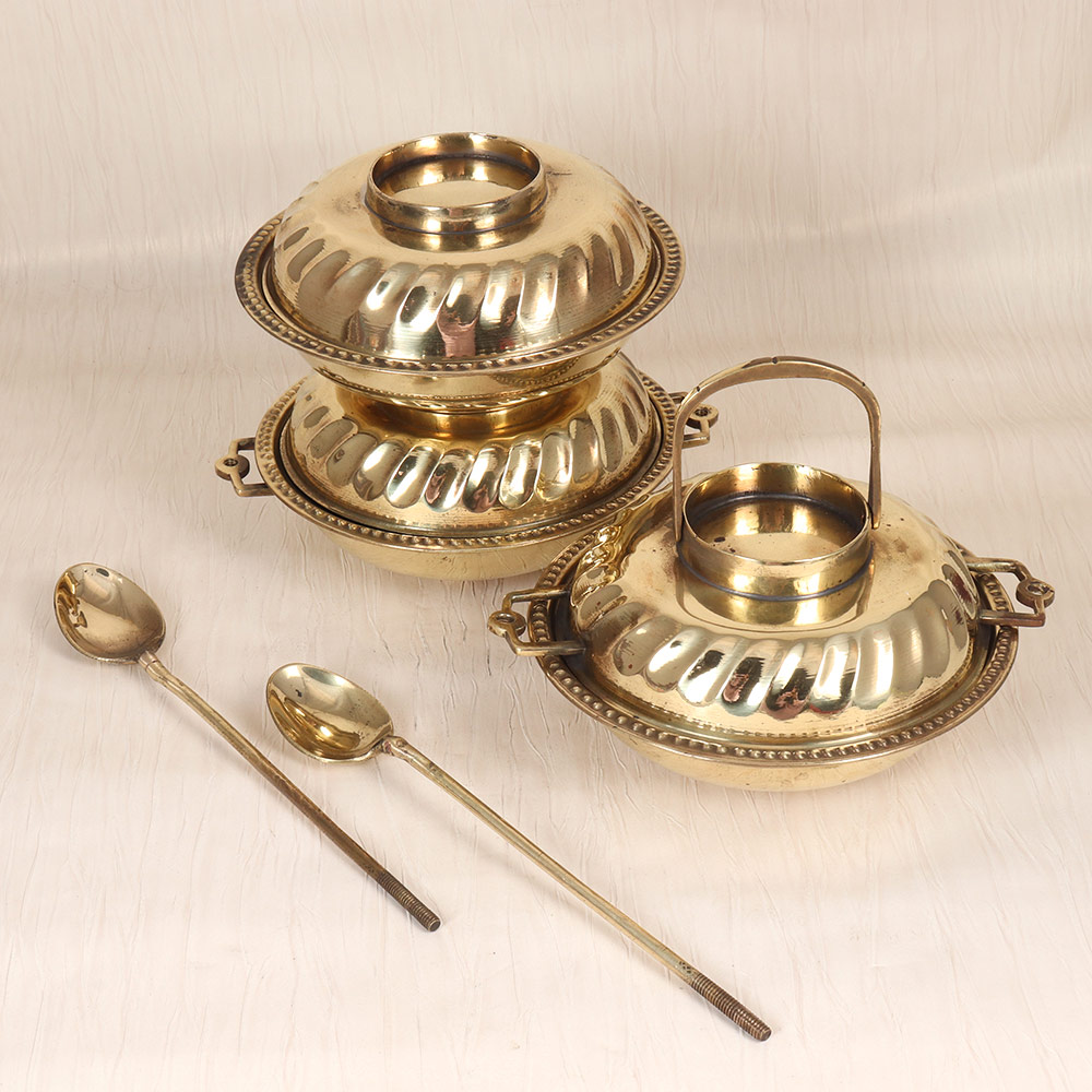Discover a piece of history that will captivate and enchant - the vintage brass tiffin box with two spoons adorned in the exquisite English Art style. This timeless treasure is more than just a functional container; it's a work of art that will elevate the ambiance of any space. Embrace the beauty of the past and let this vintage brass tiffin box become the centerpiece of your décor. Its stunning appearance and historical significance will inspire admiration and appreciation, making it a must-have for anyone who values the timeless allure of vintage treasures. Elevate your space and indulge in the charm of this exceptional piece.