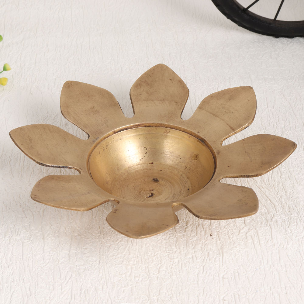 Adorn your decor with our exquisite Brass Lotus Pot that is a true embodiment of timeless elegance. Crafted with precision by highly skilled and experienced craftsmen in the English Art tradition, this magnificent piece boasts a rich antique brown finish that exudes sophistication. Handmade using only the finest quality brass, this lotus pot serves as a versatile centerpiece for any space, whether it's your home, office, restaurant, hotel, cafe, or shop. Its dual-purpose design allows you to place either vibrant flowers or shimmering candles within, creating an aura of enchantment and serenity. This exquisite creation isn't just a decor piece, it's a collector's dream. Perfectly suited for vintage collections or exhibition displays, it adds a touch of opulence to any setting. And, as a thoughtful gift, it holds a special place in the hearts of your family, friends or relatives during special, festive, or auspicious occasions.