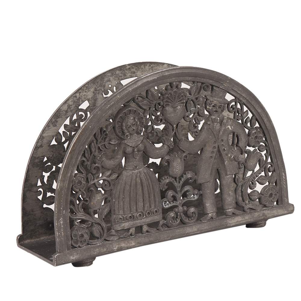 This ornate napkin holder will keep your napkins in order and in style. The silver metal decorative napkin holder with antique finish adds a sophisticated touch to your dining table or kitchen worktop. Suitable for beach or seashore decor.