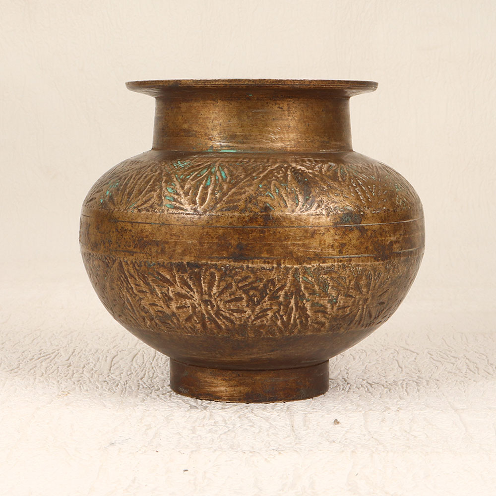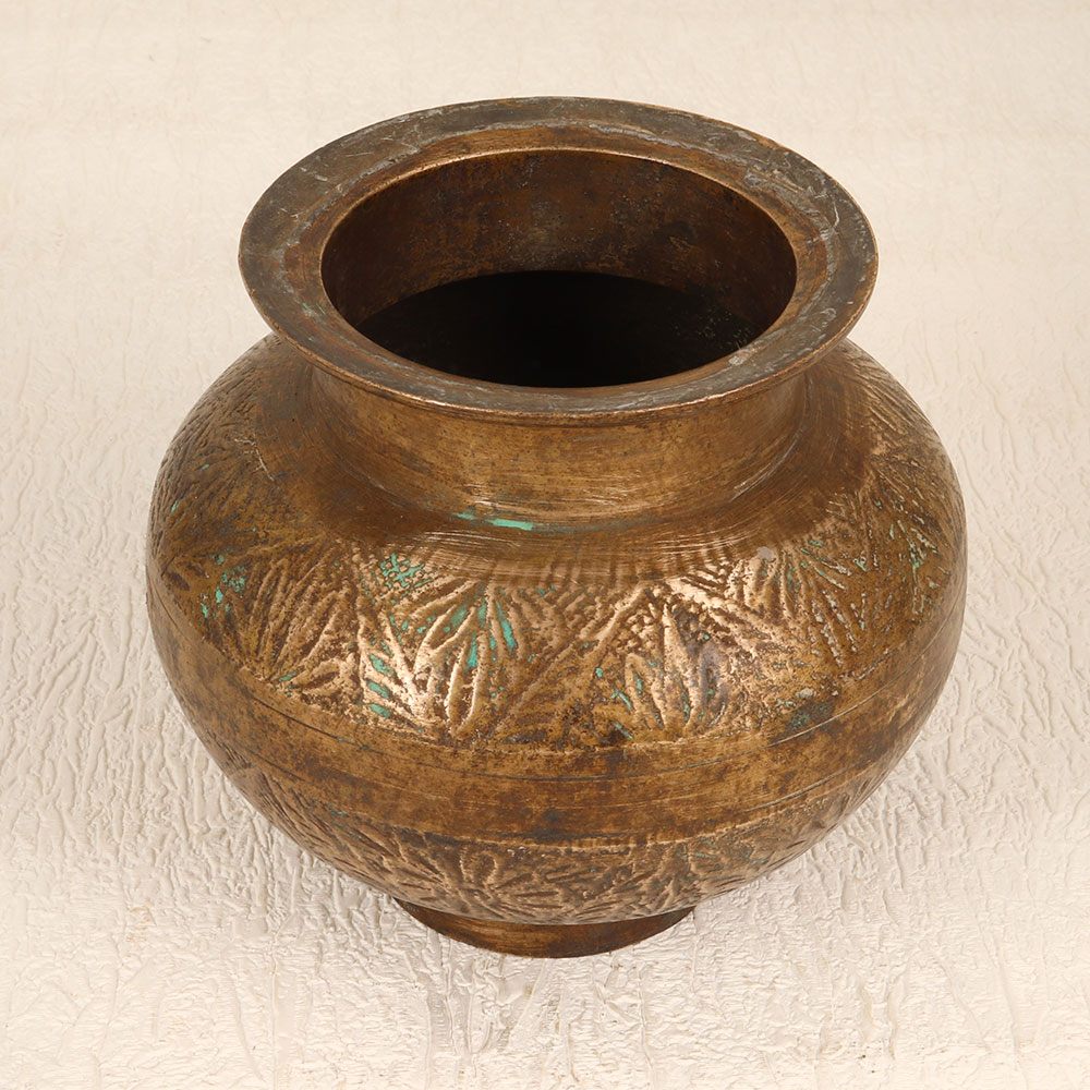 Adorn your home interior with the timeless elegance of our Vintage Brass Holy Water Pot. Crafted with meticulous artistry by highly skilled Indian artisans in the revered South Indian Art tradition, this piece is a symbol of devotion and cultural heritage. Made from high-quality brass, its antique brown finish adds a touch of vintage charm, making it a versatile addition to your prayer room, home, office, restaurant, hotel, or cafe. Designed to hold holy water during prayers, rituals, and havans, this pot showcases intricate engravings that reflect the artistry of its creators. Beyond its religious purpose, it doubles as an indoor flower pot, seamlessly blending functionality with aesthetics. This handcrafted masterpiece is a unique addition to any vintage collection and serves as a thoughtful gift for your family, friends or relatives on special, festive, or auspicious occasions.