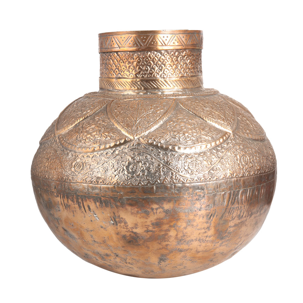 A matka with beautiful floral engravings that make it eye-catching. It was handcrafted by skilled artists from India using traditional methods to leave a long lasting impression to the interior. Buy this copper water pot online and get hassle-free delivery right to your doorstep. This matka is made of high quality copper, making it a point of attraction in an exhibition or museum. A great item for lovers of ancient art to add to their collection. These copper water pots were used in Indian households to store water. Nowadays they are in high demand to decorate home, office, restaurant and hotels. Gift this incredible matka to your family, friends and relatives on a special or festive occasion.