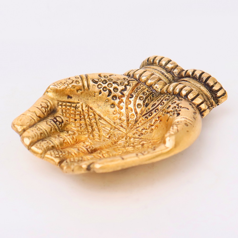 Bring home divine energy with the Engraved Design Two Hands Brass Diya Oil Lamp, a beautiful creation where two sculpted hands gracefully cradle the sacred flame. Made from solid brass with a golden polish, this diya combines artistry and spirituality, reflecting the offering of light to the divine. Perfect for temples, home mandirs, and festive occasions, it stands as a reminder of devotion and blessings.