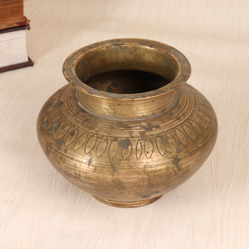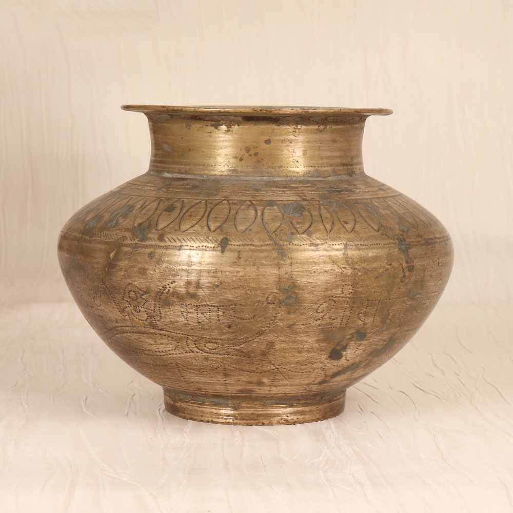 Infuse your spiritual practice with the timeless elegance of this stunning vintage brass holy water pot, crafted by skilled artisans in the heart of Gujarat, India. Adorned with intricate carvings that pay homage to the region's renowned artistic tradition, this sacred vessel will become a cherished centerpiece in your sacred space. As you pour the sacred liquid from this exquisite pot, feel the weight of the brass in your hands and the energy of the carvings, which connect you to the timeless wisdom of the region. Allow this vessel to become a touchstone for your spiritual practice, grounding you in the ancient traditions that have nourished devotees for generations. Whether you're a seasoned practitioner or simply appreciate the artistry of traditional Indian craftsmanship, this vintage brass holy water pot is a must-have addition to your sacred space. Invest in a piece that will become a treasured heirloom, a tangible reminder of the rich cultural legacy that has shaped the spiritual practices of Gujarat.