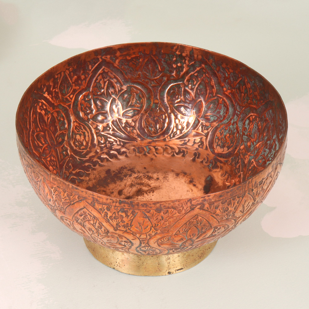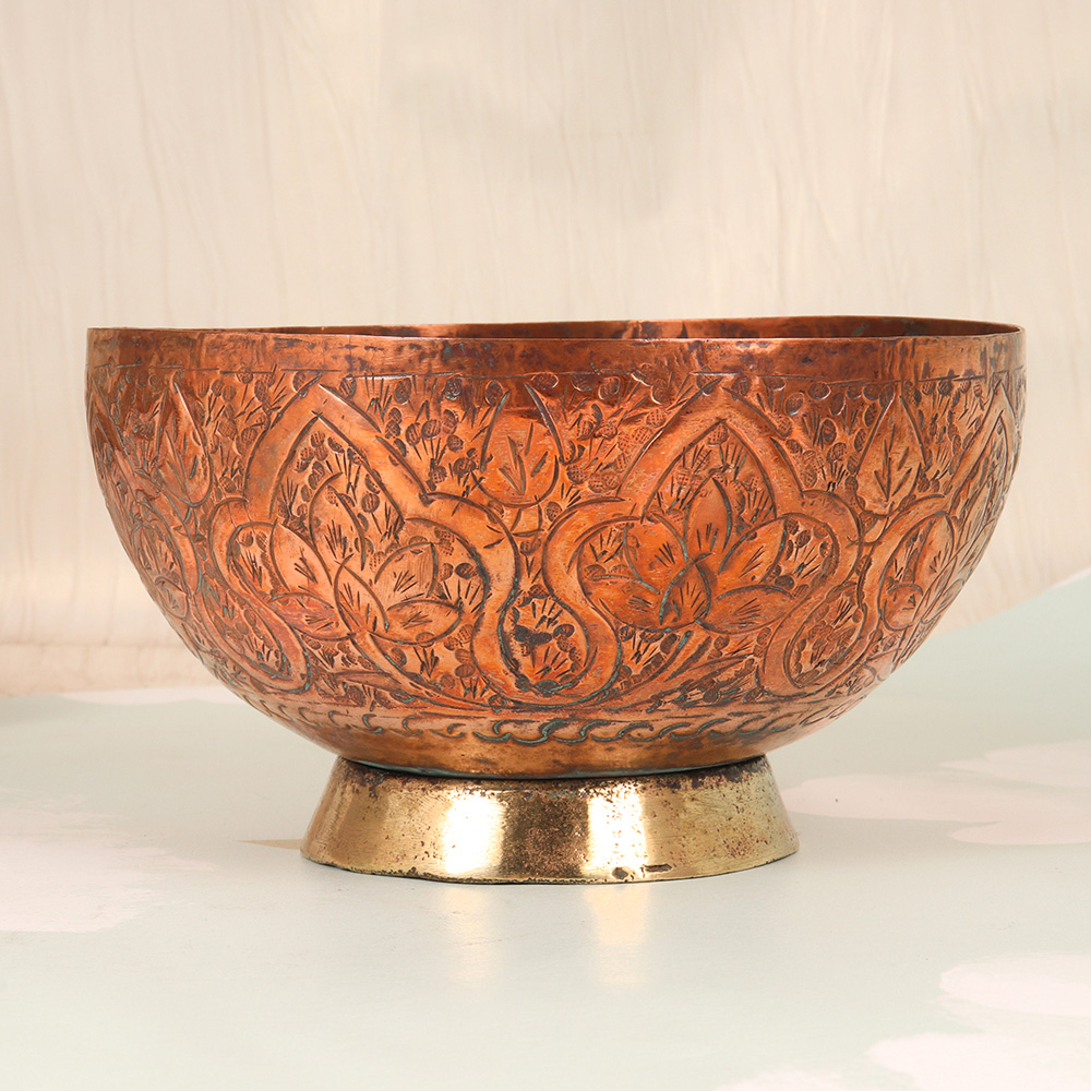 Elevate your living space with the Vintage Copper Islamic Bowl, a stunning masterpiece that showcases the rich cultural heritage of the Islamic world. Crafted with unparalleled skill and attention to detail, this exquisite bowl is a true work of art that will transform any room into a sanctuary of timeless elegance. Whether you're a collector of fine art, a lover of world cultures, or simply someone who appreciates the beauty of exceptional craftsmanship, this Vintage Copper Islamic Bowl is a must-have addition to your home. Immerse yourself in the captivating world of Peshawari Art and let this exquisite piece inspire and captivate you every day. Elevate the ambiance of any room with the mesmerizing presence of this Vintage Copper Islamic Bowl. Its rich history and exceptional craftsmanship make it a true work of art, evoking a sense of wonder and cultural appreciation in all who behold it. Bring the allure of the Islamic world into your home and experience the transformative power of this stunning piece.