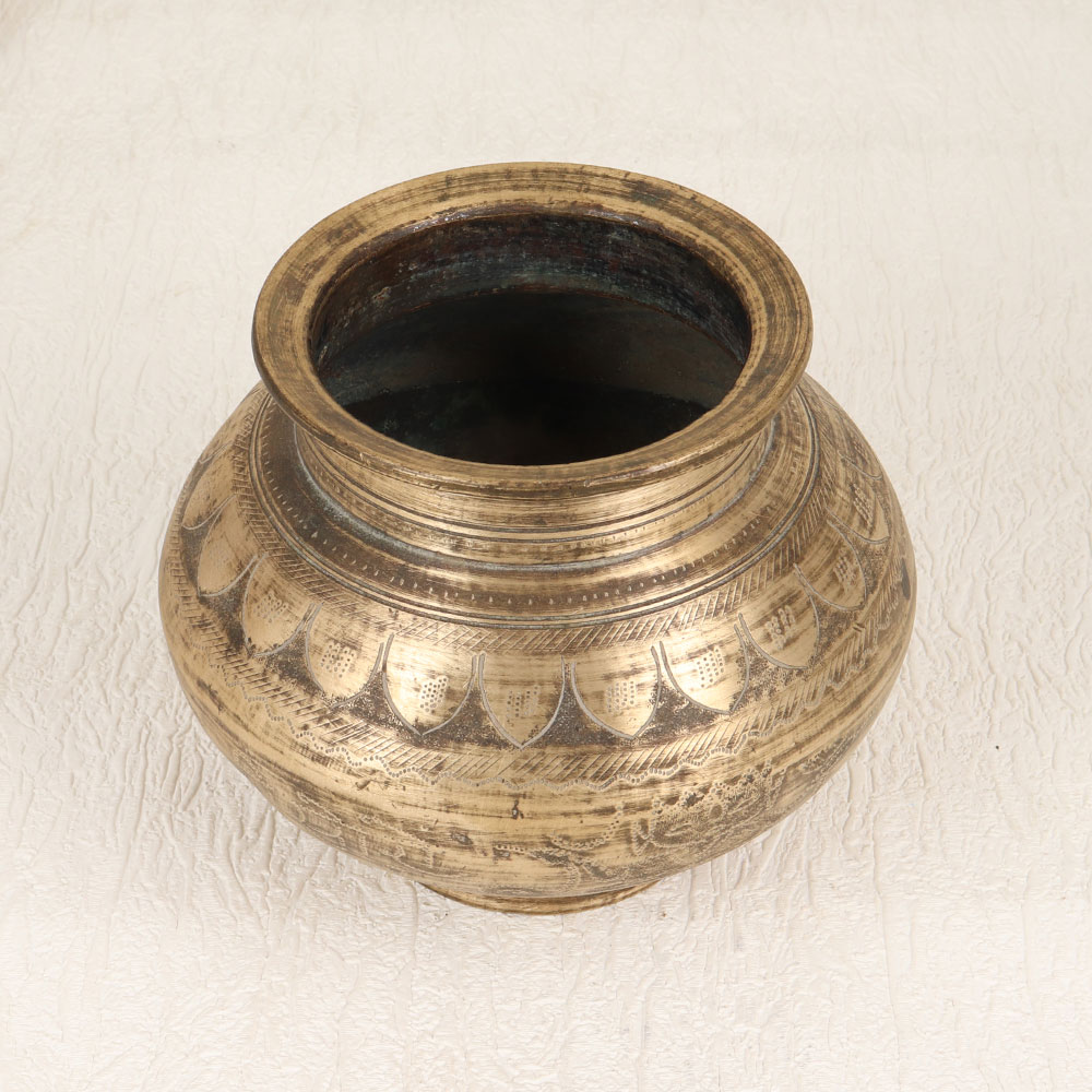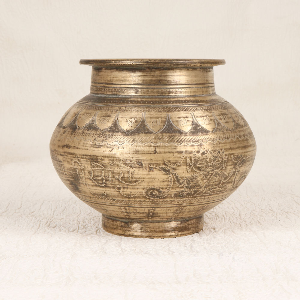 Enhance your spiritual rituals with this Vintage Brass Holy Water Pot that is meticulously handcrafted by highly talented Indian artisans from Gujarat. Crafted from high-quality brass, this pot boasts a timeless antique brown finish, adding an aura of authenticity and tradition to any sacred space. Intricate engravings adorn the surface, enhancing its aesthetic appeal and making it a cherished piece for religious ceremonies, havans, and temple offerings, particularly to the revered Shivling. Versatile and elegant, this holy water pot transcends its religious purpose, doubling as a captivating decorative item suitable for homes, offices, restaurants, hotels, or cafes. Its vintage charm also makes it a remarkable addition to any collector's ensemble. Embrace the richness of Indian craftsmanship and tradition with this handmade masterpiece, a symbol of devotion and a thoughtful gift for your family, friends or relatives on special, festive, or auspicious occasions.