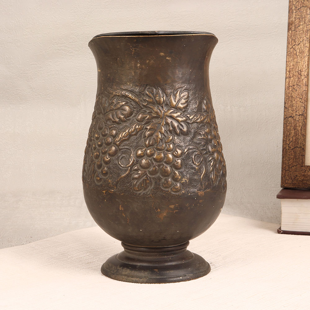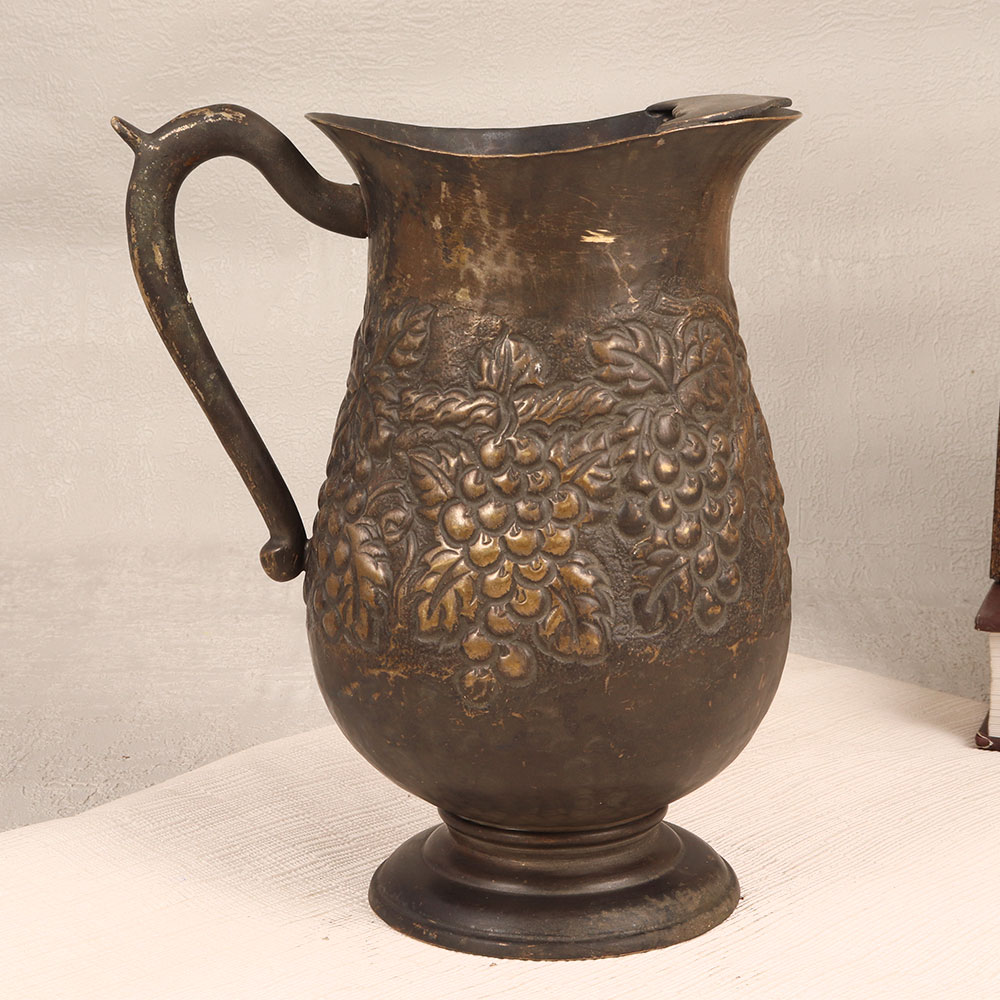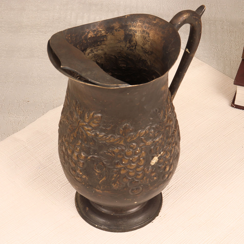 Buy a Vintage Brass Jug online and get a hassle free delivery right at your doorstep. Handmade by skilled Indian artisans from premium brass, this exquisite piece boasts a rich antique dark brown finish that adds a touch of old-world elegance to any setting. The jug's surface is adorned with intricate engravings, showcasing the meticulous craftsmanship and attention to detail invested in its creation. Featuring a sturdy handle, this jug is not just a decorative accent but also a versatile addition to your decor. Perfect for adorning homes, offices, restaurants, hotels, or cafes, it seamlessly blends into various settings. Embrace its dual functionality by using it as a distinctive flower pot, adding a natural and refreshing touch to your space. This vintage brass jug is a delightful addition to any collector's trove, reflecting the beauty of a bygone era. Consider it a thoughtful gift for your family, friends or relatives on special, festive, or auspicious occasions.