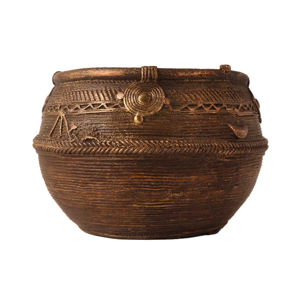 Buy a brass bowl with fine carving on our website to make your interior eye-catching with its beautiful design. This rice measurement or mana bowl is handmade from high quality brass by skilled and experienced craftsmen using traditional methods. This brass bowl was used for measuring rice before cooking in Odisha. This brass rice measurement bowl is also known as mana bowl in Odisha. Make your home and office interior an eye catching with this beautiful engraved rice measuring bowl. Add an aesthetic flair to your interior by placing this exquisite piece of art on table, shelf, desk or altar. Since these bowls can also be used as indoor planters, they are in high demand nowadays to decorate homes, offices, restaurants, hotels and stores. A perfect gift for any special and festive occasion for your loved ones.