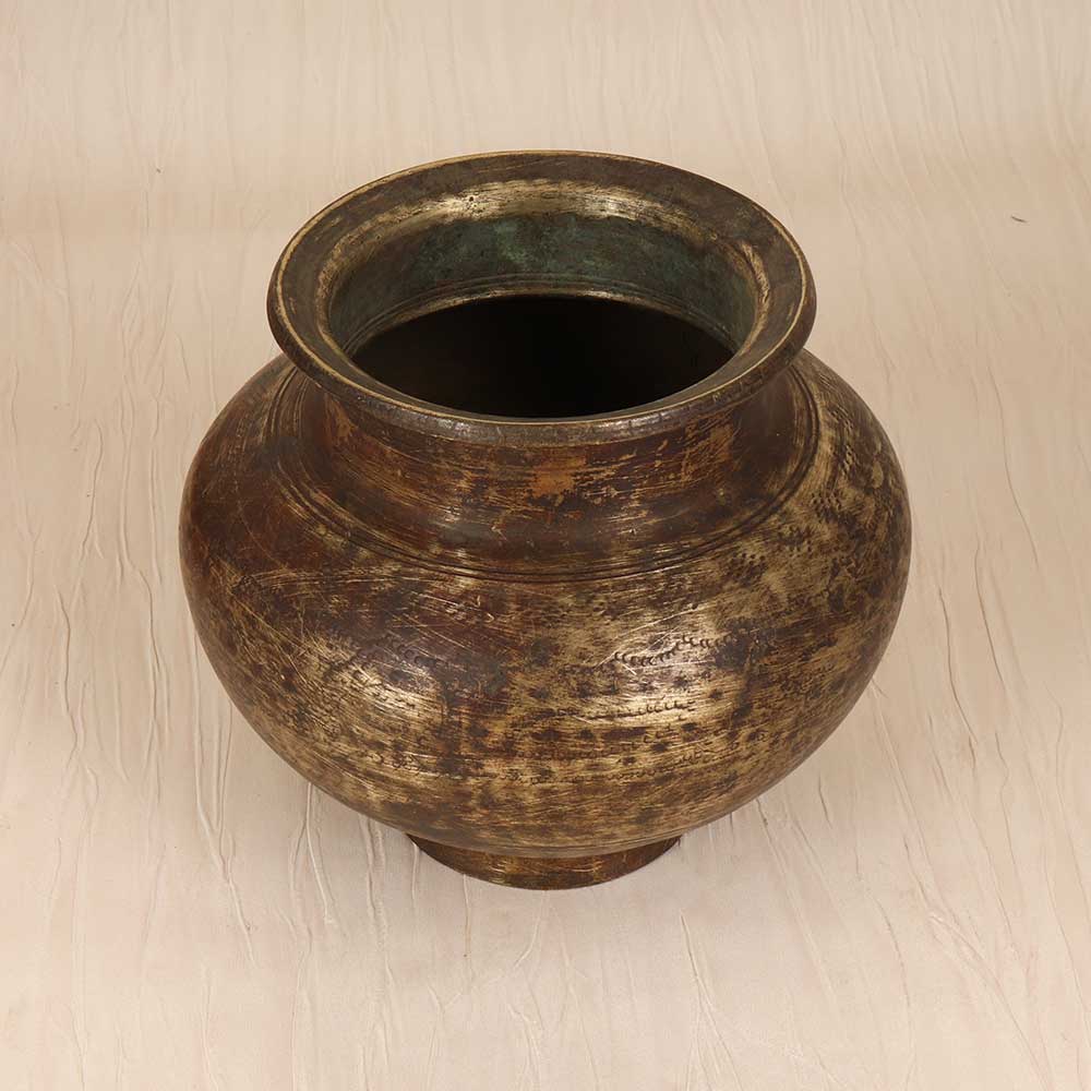 Embrace the storied craftsmanship of India with this engraved brass holy water pot. This vintage-inspired vessel marries artisanal detail with functional utility. Use this sacred vessel to sanctify your space and rituals. The intricate floral motifs impart a sense of meaning and devotion as you bless yourself. Place it by your door or in your place of worship as a beautiful decorative piece that enhances your practice. Bring home a slice of India’s rich artistic tradition with this hand-engraved brass pot. Its vintage styling gives sacred rituals a touch of mindful artistry. This functional showpiece makes a cherished addition to any spiritual space.