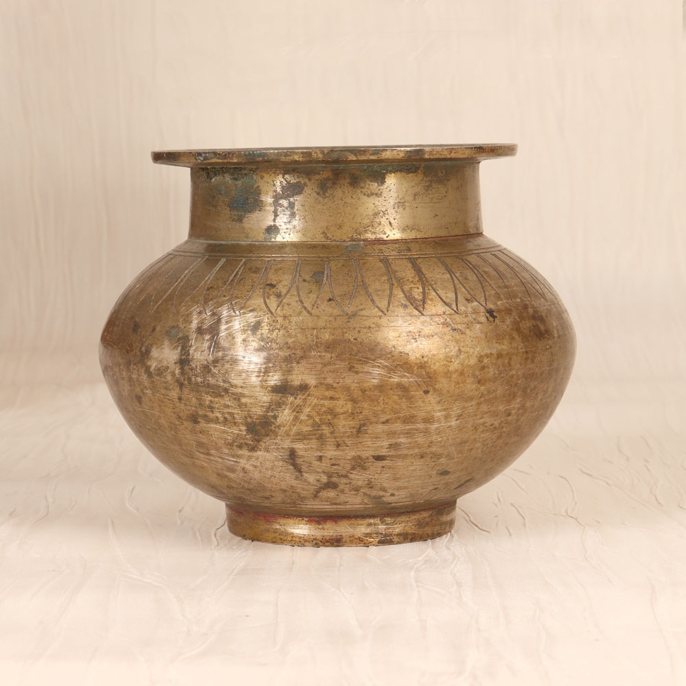 Discover the beauty and tradition of this stunning vintage brass holy water pot, crafted with meticulous attention to detail by artisans in the vibrant region of Gujarat, India. Featuring intricate carvings that pay homage to the area's rich cultural heritage, this vessel is a true work of art that will captivate and inspire. More than just a functional object, this holy water pot is a cherished heirloom that will elevate your sacred rituals and infuse your space with a profound sense of spirituality. The ornate carvings, skillfully executed by local artisans, imbue the piece with a timeless elegance and connection to the divine. Whether you're an experienced practitioner or simply appreciate fine craftsmanship, this vessel will be a beloved companion on your spiritual journey. Designed to last for generations, this brass holy water pot is a must-have for anyone seeking to deepen their connection to their practice. Fill it with blessed water and use it to bless your home, cleanse your aura, or enhance your meditation. With its superior construction and unparalleled beauty, this piece will become a treasured part of your spiritual routine, inspiring a sense of reverence and connection with every use.