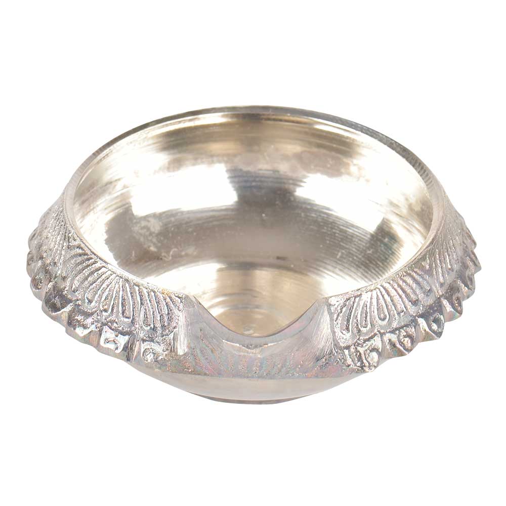 Traditional Sacred Prayer Collection Silver plated Kuber Deep Diya is crafted for your daily prayers from high-grade Brass and embellished With an ornate pattern and lovingly etched With a simple yet elegant pattern.