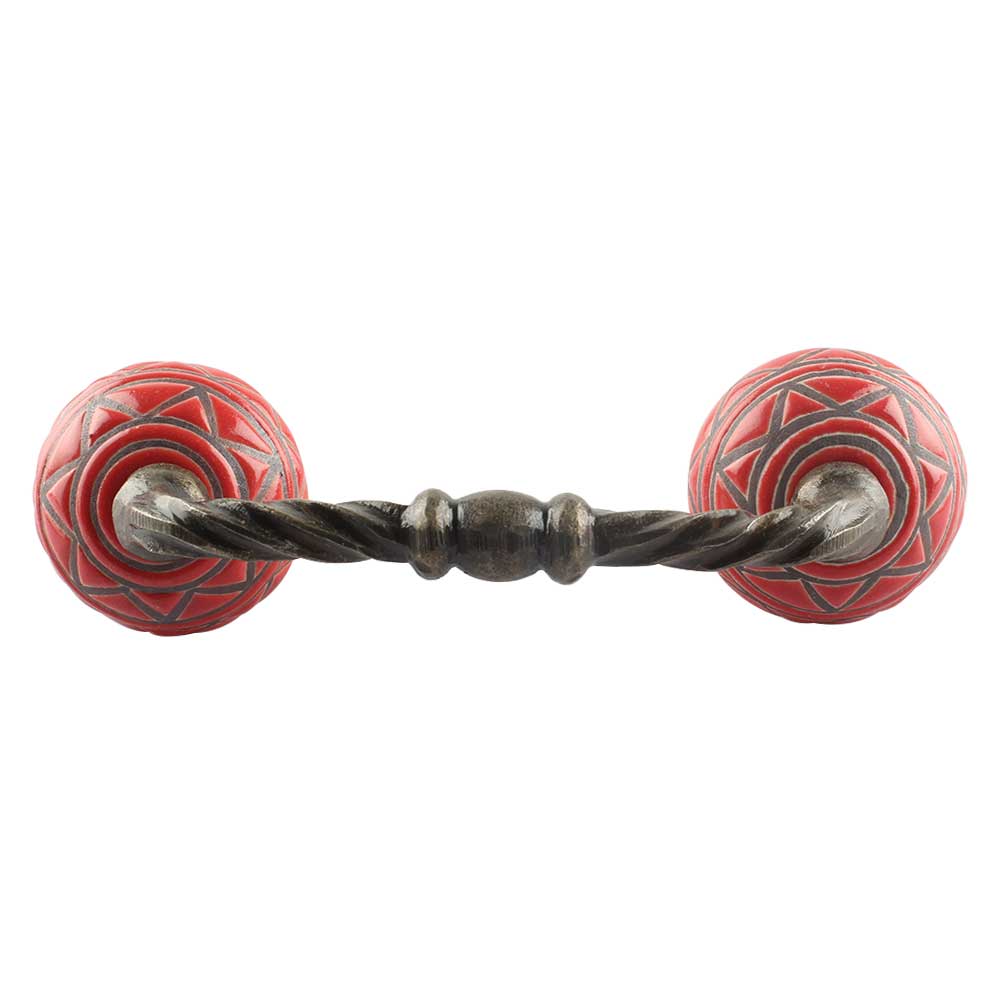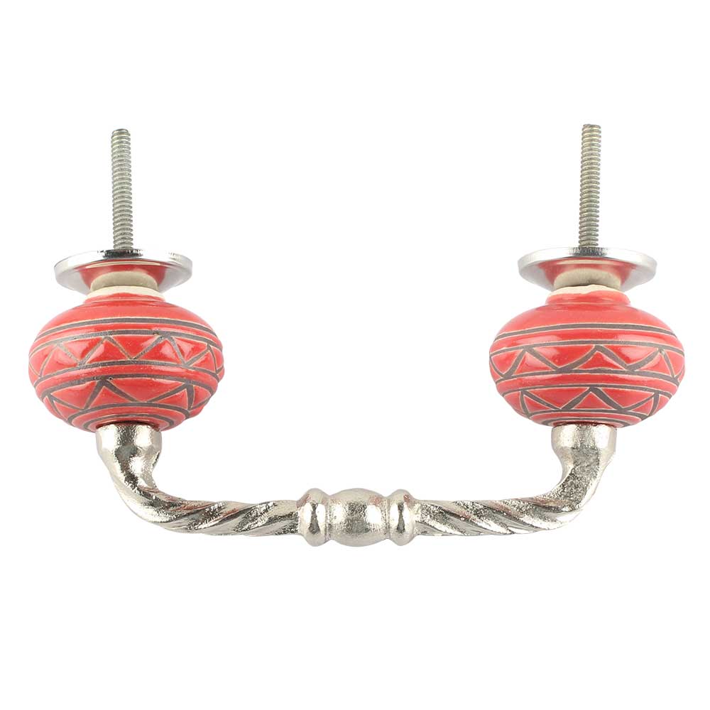 Etched Ceramic Cut Bridge Handle in Red. Ideal for Drawer, Dresser, Cabinet, Wardrobe, Cupboard and Almirah etc.