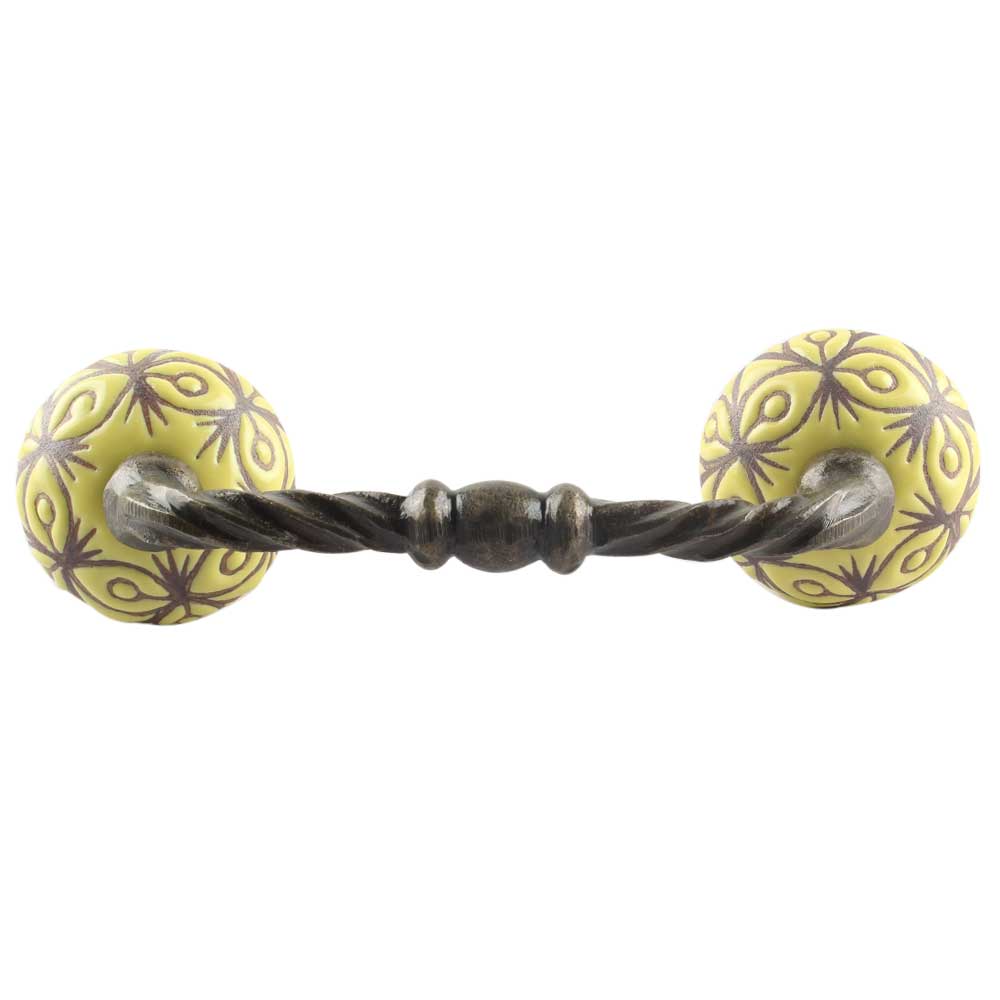 Etched Ceramic Cut Bridge Handle in Yellow. Ideal for Drawer, Dresser, Cabinet, Wardrobe, Cupboard and Almirah etc.