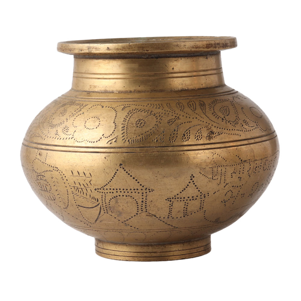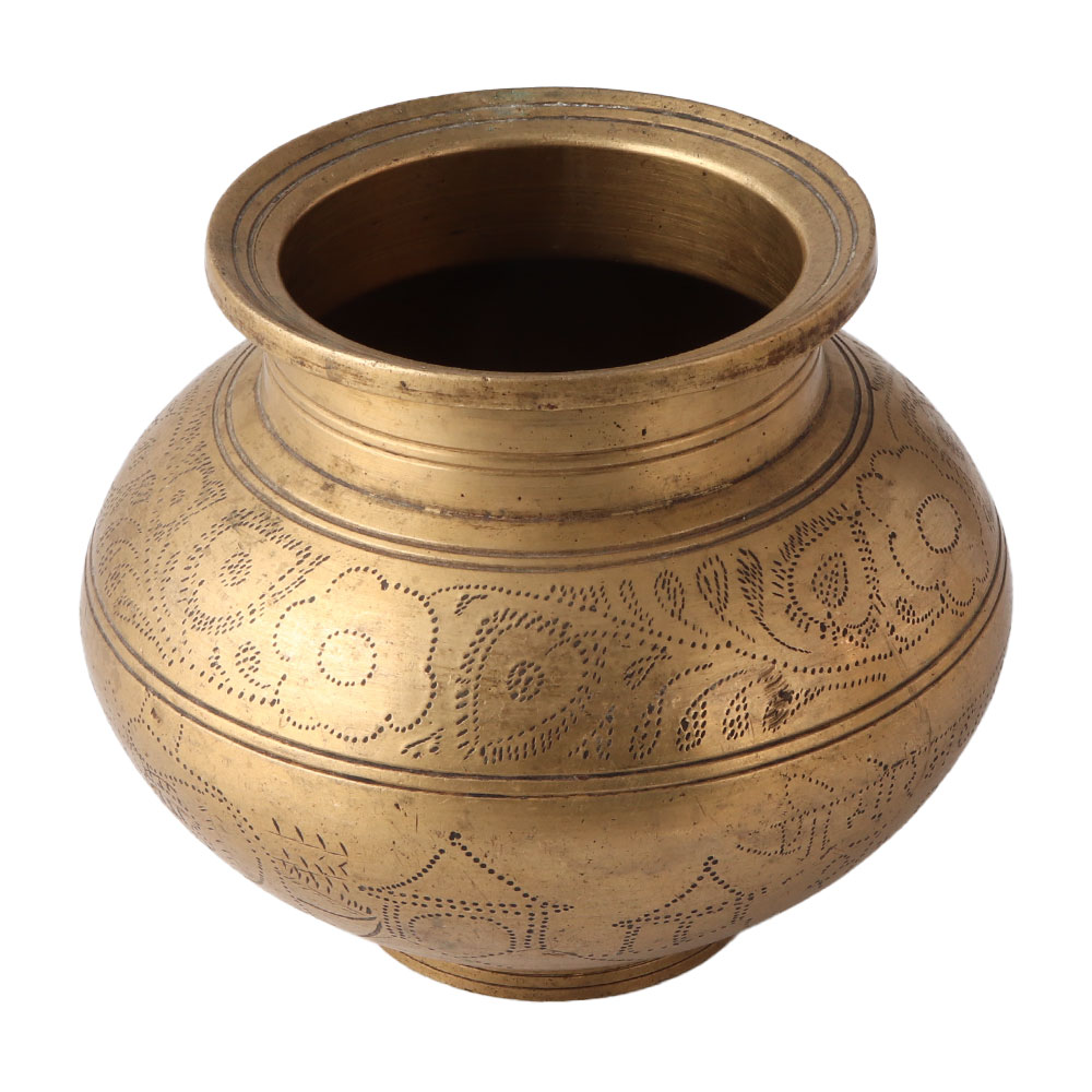 The antique brass indian pot has religious significance and is a valuable collectible. If you're an antiques enthusiast, you may even use it as a planter in your home. It is exquisitely carved. Craftsmanship on handmade items manufactured by artisans is difficult to imitate. Excellent present for anniversaries, weddings, and other happy events.