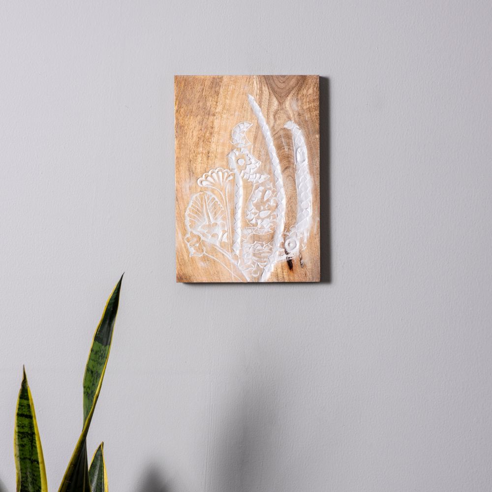 Infuse your interiors with natural elegance through this white wooden wall plate, featuring hand-carved floral artistry on a warm wooden base. The contrast of white carvings against the natural grain creates a timeless, versatile piece perfect for modern and traditional spaces alike. Packed & quality-checked by Indianshelf.