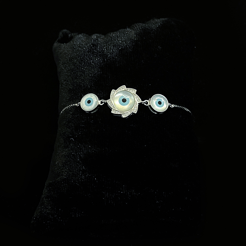 This flexi bracelet features a round floral evil eye centerpiece crafted in 925 sterling silver. The design blends symbolic protection with a composed floral form, creating a refined accessory for daily wear and meaningful occasions. Its flexible structure supports comfortable movement while maintaining visual balance. Finished with care for long term use. Packed and quality checked by Indianshelf.