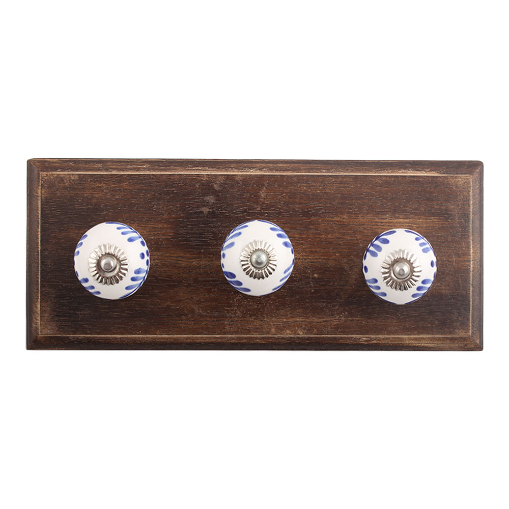 Festive Floral Ceramic Wooden Hook. A Perfect Complement to the Soft Tone of the Wood are these White Traditional Hat Coat Hook Made of Genuine Porcelain and Brass. It can be use to Hang Jewellery, Leashes, Towels, Scarves, Light Weight Sweaters, Caps Etc.