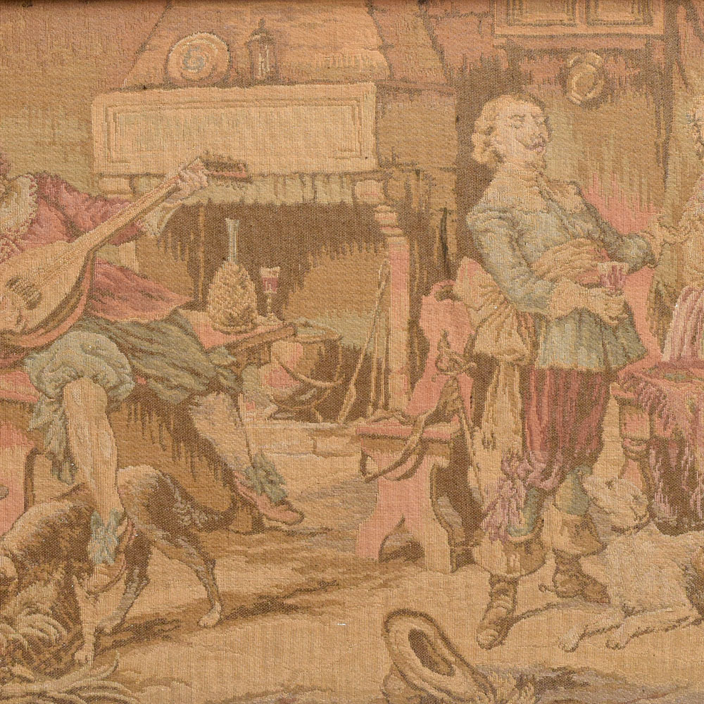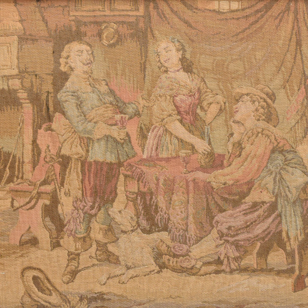Step into a world of refined sophistication with this breathtaking work of art. Lose yourself in the timeless elegance of the tapestry's design, where every thread and every hue has been meticulously placed to create a truly mesmerizing visual experience. As you gaze upon the scene, you can almost hear the lively melodies and feel the joyous energy radiating from the figures. This is more than just a piece of décor - it's a portal to a bygone era, a testament to the enduring artistry of Europe's most skilled craftspeople. Whether you're a seasoned collector or simply someone who appreciates the beauty of fine art, this tapestry will captivate and inspire you. Hang it in your living room, your study, or any space that deserves a touch of refined sophistication. With its ability to elevate any environment, this exquisite work of art is sure to become the centerpiece of your home and a conversation starter for all who behold its timeless elegance.