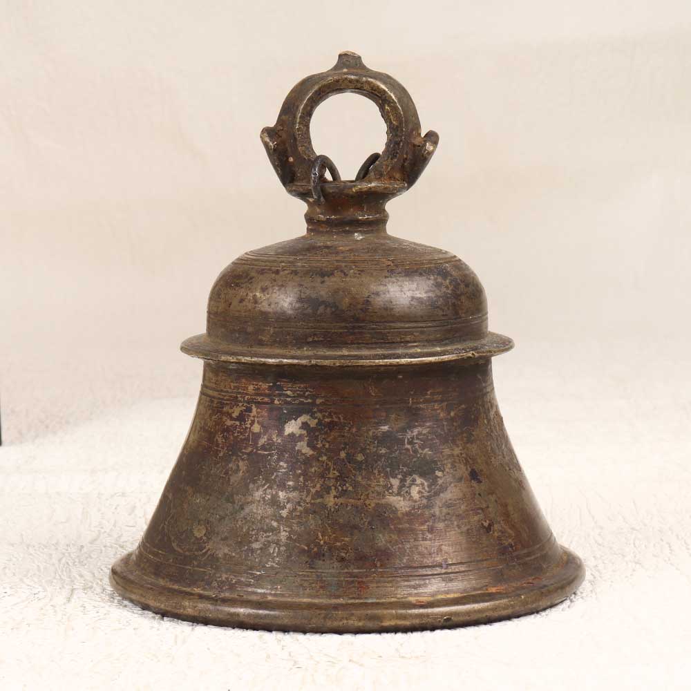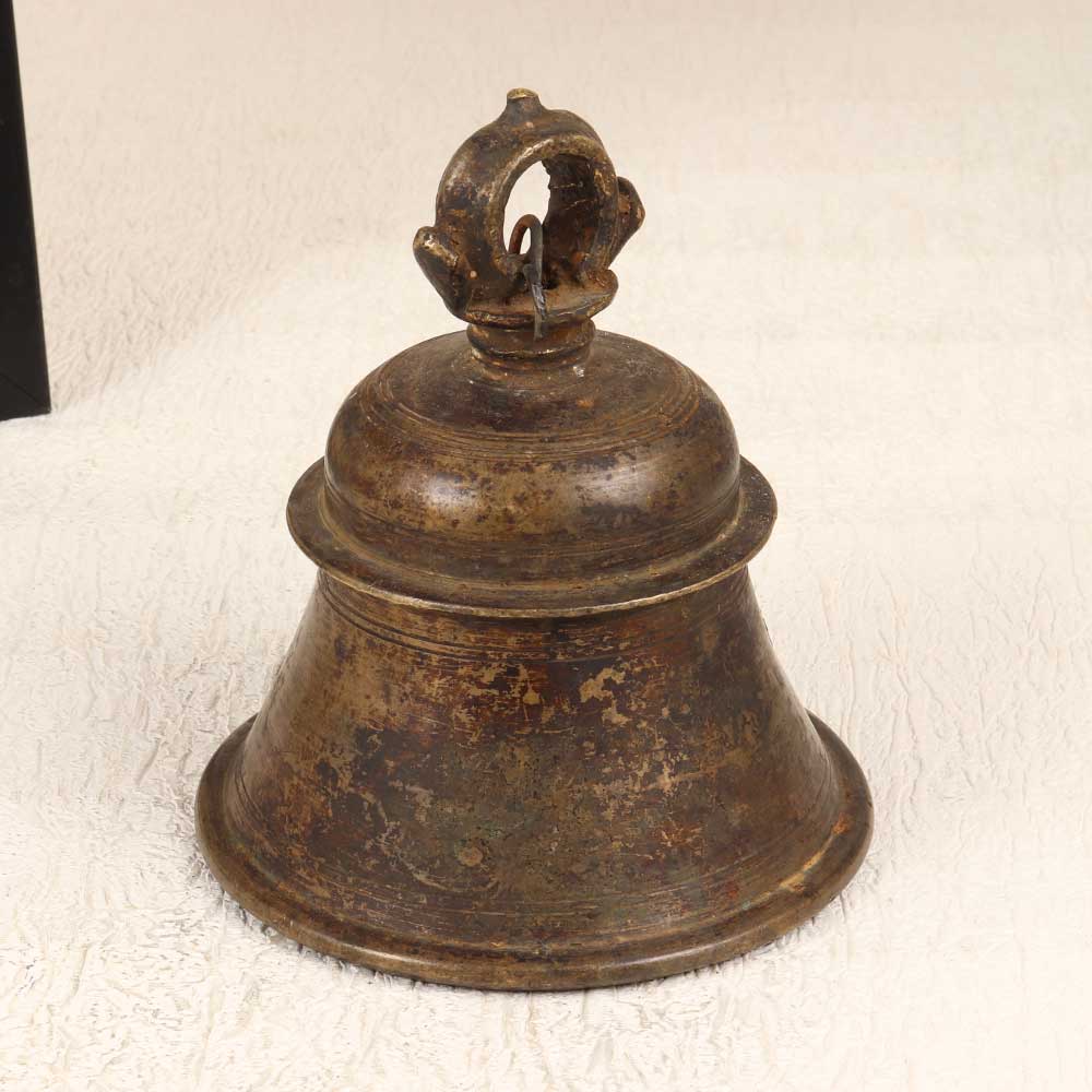 The sound of peace and serenity is just a ring away with this stunning bell metal temple bell. Crafted from durable bronze metal and boasting a classic loop for hanging, this bell brings the tranquility of ancient temples right to your home. Allow the beautiful, soothing tones of this bell metal temple bell to transform any space into your own personal sanctuary. The rich sound will wash over you like a calming wave, helping you de-stress and retreat into a peaceful state of mind. Expertly cast using techniques honed over centuries, this bell's quality and craftsmanship reflect India's proud artistic heritage. Whether you display it as an ornament or actively ring it as part of your meditation practice, this bell makes a meaningful addition to any spiritually-minded home. Gift it to the yogi in your life or claim this little piece of nirvana for yourself. With its vintage design and artisanal origins, this bell metal temple bell will infuse any room with serenity. Let the soothing chimes remind you to take a mindful breath and reconnect with the present moment.
