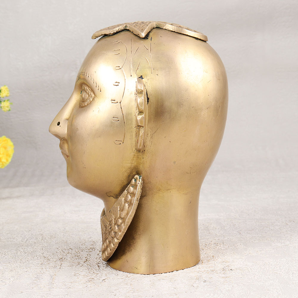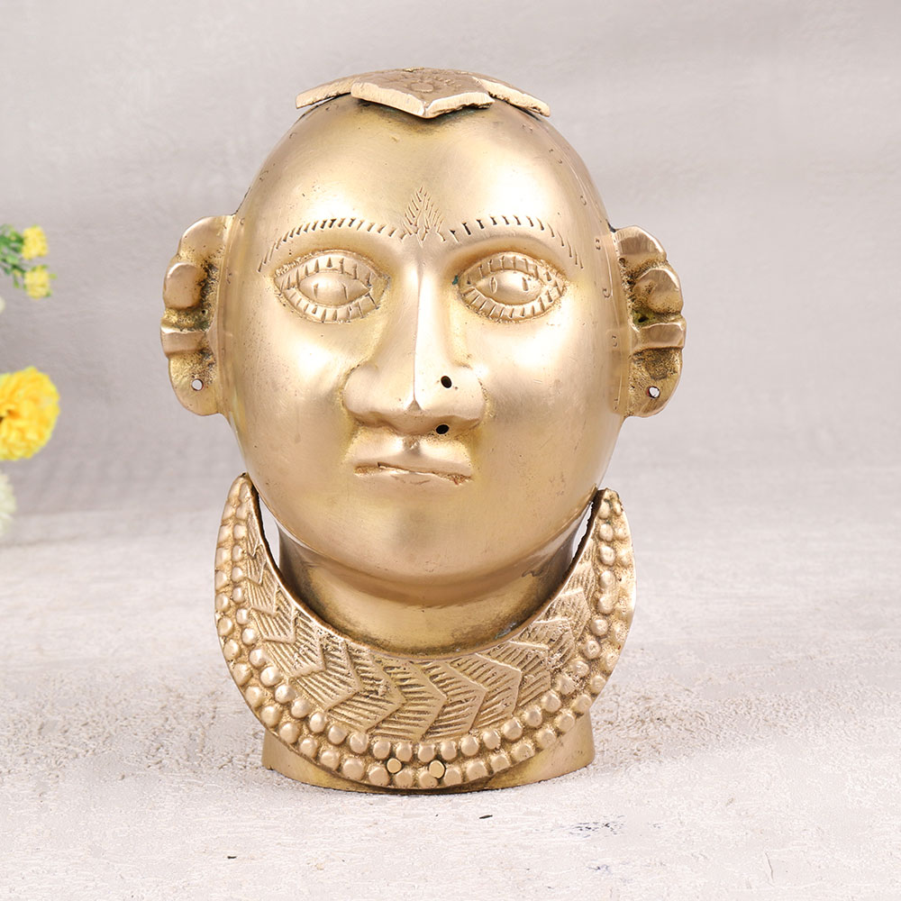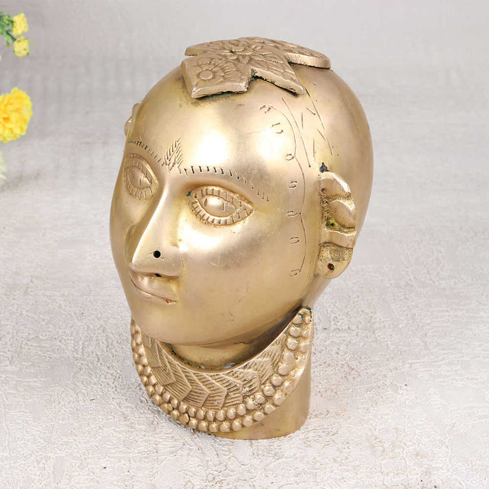 Buy a Vintage Brass Gauri Head online that is a divine embodiment of Goddess Parvati crafted with precision and devotion by highly skilled Indian artisans from Gujarat. This masterpiece is handmade from high-quality white Brass, adorned with a lustrous brown finish that exudes a timeless charm. This Gauri head, with its intricate details and vintage allure, serves as a captivating addition to any space. Perfect for home, office, restaurant, hotel, or cafe prayer rooms, it seamlessly blends spirituality with aesthetic appeal. Whether placed for worship or as an ornamental piece, its versatile nature lends itself to diverse settings. Emanating the rich cultural heritage of Gujarat, this artefact transcends time, making it an ideal addition to any vintage collection. Celebrate special, festive, or auspicious occasions by gifting this divine creation to your family, friends or relatives, symbolizing blessings, love, and the enduring craftsmanship of Indian artistry.