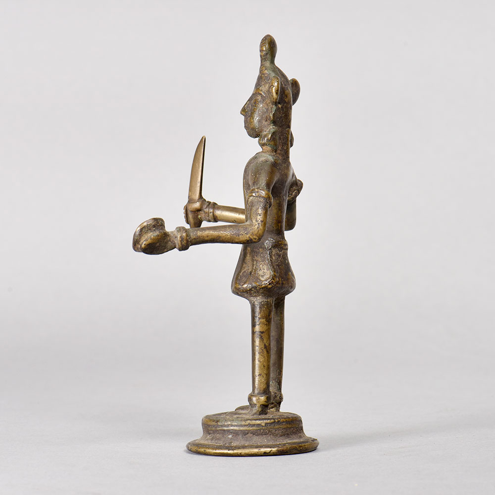 Elevate your space with the captivating presence of this exquisite brass Hindu Goddess statue. Crafted with meticulous attention to detail, this piece is a stunning representation of the divine feminine, imbued with the rich cultural heritage of ancient India. This brass Goddess statue is more than just a decorative piece - it's a vessel of spiritual energy, inviting you to connect with the timeless wisdom and power of the divine feminine. Whether you're a collector of tribal art or simply seeking to infuse your space with a sense of serenity and reverence, this stunning statue will captivate and inspire. Imagine the Goddess gracing your living room, bedroom, or meditation space, her serene gaze and elegant pose emanating a calming presence that soothes the soul. This exquisite work of art will not only elevate the aesthetic of your home but also serve as a daily reminder of the sacred feminine energy that flows through all of life.