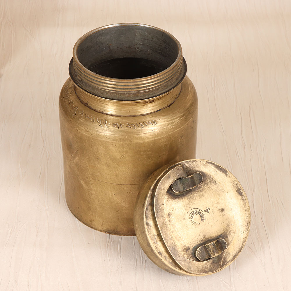 Elevate your spiritual practice with this stunning vintage brass holy pot, crafted to preserve the purity and energy of the revered Gangajal - holy water from the sacred Ganges river. This timeless vessel combines the timeless allure of brass with modern functionality, making it the perfect companion for your devotional rituals. More than just a container, this holy pot is a work of art that will become the centerpiece of your devotional practice. The rich, lustrous brass radiates an air of reverence, transporting you to the ancient temples of India. Whether you're performing puja, offering Gangajal to the deities, or simply seeking a beautiful way to store this sacred water, this pot will become an indispensable part of your spiritual journey. Designed with the devout Hindu in mind, this holy pot is a beautiful and practical addition to any home. Its compact size makes it easy to display on your altar or shelf, while the generous capacity ensures you always have Gangajal on hand for your daily rituals. Embrace the power of this timeless tradition and let this exquisite brass pot deepen your connection to the divine, elevating your spiritual practice to new heights.