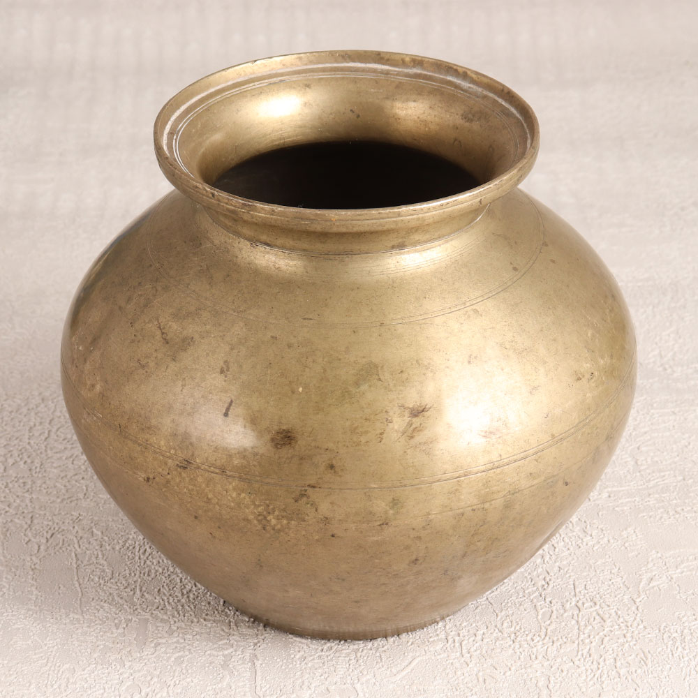 Buy a vintage brass holy water pot online and get a hassle free delivery right at your doorstep. Handmade with utmost precision by talented artisans hailing from the enchanting region of Rajasthan, India, this pot showcases the rich heritage of their craftsmanship. Its antique brown finish adds a touch of rustic elegance, giving it an aura of authenticity. Made from high-quality brass, this pot exudes durability and a sense of timelessness that is hard to come by in modern mass-produced items. This versatile piece can find a place in your home, office, hotel, cafe, shop, or restaurant's prayer room, infusing your environment with an air of spiritual serenity. Use it during prayers, or repurpose it as a charming small flower pot, bringing the beauty of nature indoors. Not only does this holy water pot spread positive energy throughout your home, but it can also make a unique addition to your vintage collection. Display it proudly at exhibitions or surprise your family, friends or relatives with this exceptional piece on special, festive, or auspicious occasions.