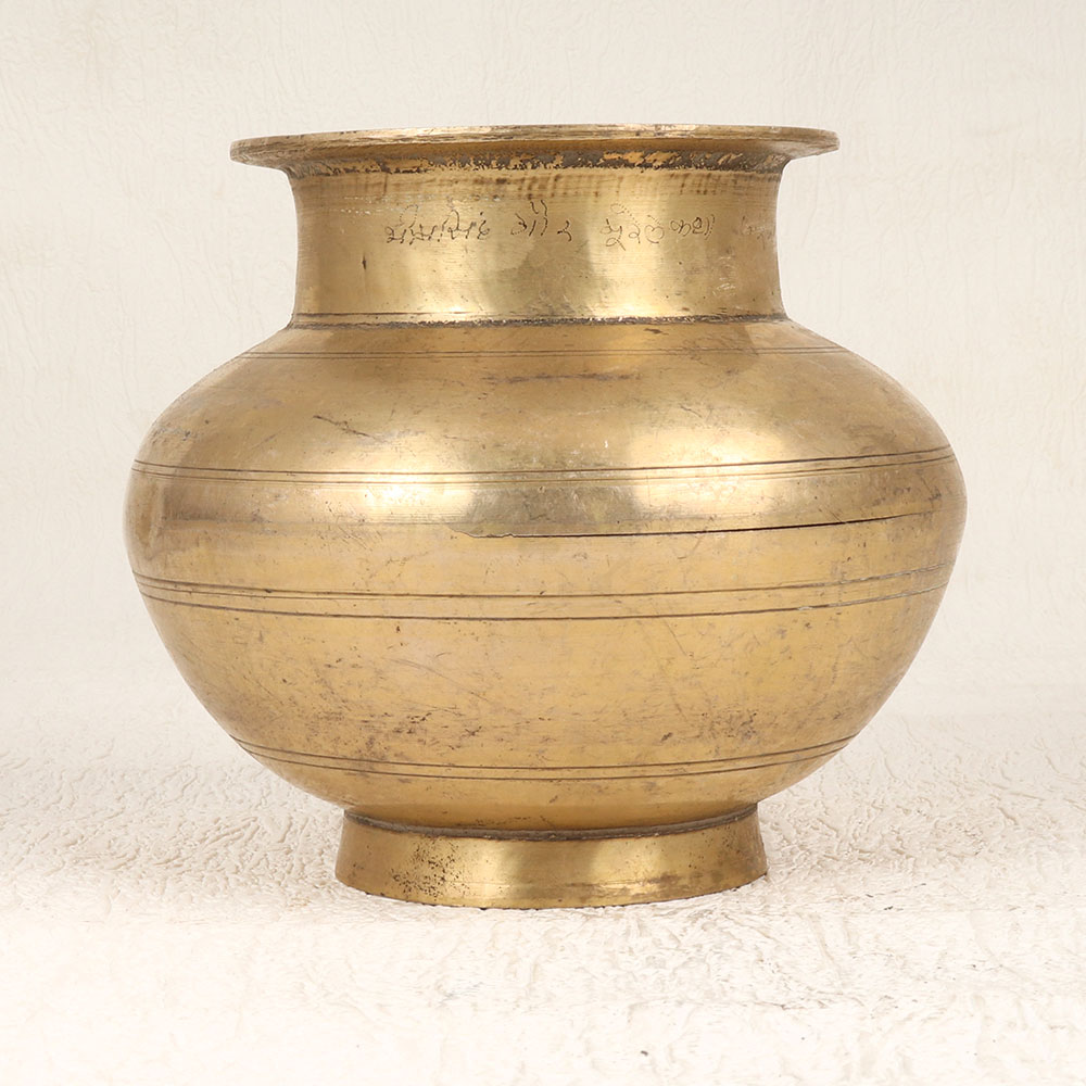 Buy a Vintage Brass Holy Water Pot online which is a timeless and sacred artefact handcrafted by highly skilled Indian artisans in the revered South Indian Art tradition. This piece is meticulously fashioned from high-quality brass, ensuring both durability and an authentic aesthetic. Adorned with an antique brown finish, it exudes an air of elegance and antiquity, making it a perfect addition to your prayer room, whether at home, in the office, a restaurant, hotel, or cafe. This holy water pot serves a dual purpose, seamlessly transitioning from a vessel for sacred rituals, prayers, and havans to an indoor flower pot, bringing a touch of spirituality to any space. Its versatility allows it to harmonize effortlessly with various interiors, while its vintage charm makes it an excellent addition to any collector's repertoire. Elevate special occasions by gifting this remarkable piece to your family, friends or relatives, expressing your heartfelt wishes during festive, auspicious moments.