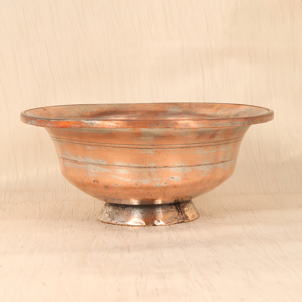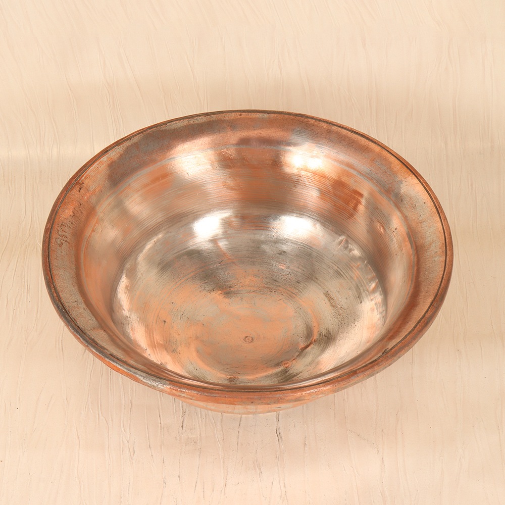 Discover the captivating beauty of Islamic art with the Vintage Copper Fruit Bowl - a stunning, functional piece that will elevate your kitchen and dining experience. This exquisite copper fruit bowl is a true testament to the enduring artistry of the past. The shimmering copper surface reflects the light, casting a warm, inviting glow that instantly transforms any space. Adorned with a subtly textured, geometric pattern in a shiny plain brown finish, it effortlessly blends the timeless elegance of Islamic design with the sophistication of modern décor. Whether you're hosting a dinner party or seeking to add a touch of refined style to your daily routine, the Vintage Copper Fruit Bowl is a must-have addition to your home. Elevate your space and savor the beauty of Islamic-inspired design, while enjoying the convenience of a durable, multifunctional kitchen essential that will captivate your guests and elevate your everyday.