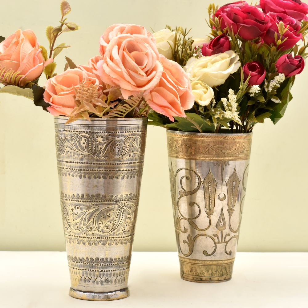 Floral Design Golden Brass Vintage Butter Milk Cup a sturdy, elegant, and lovely addition to your home decor. It is frequently quickly transformed into a lovely day of remembrance, Wedding, Diwali, or Valentine gift item.
